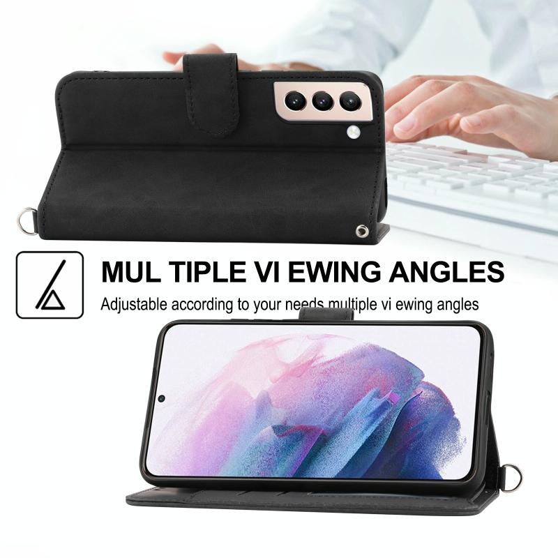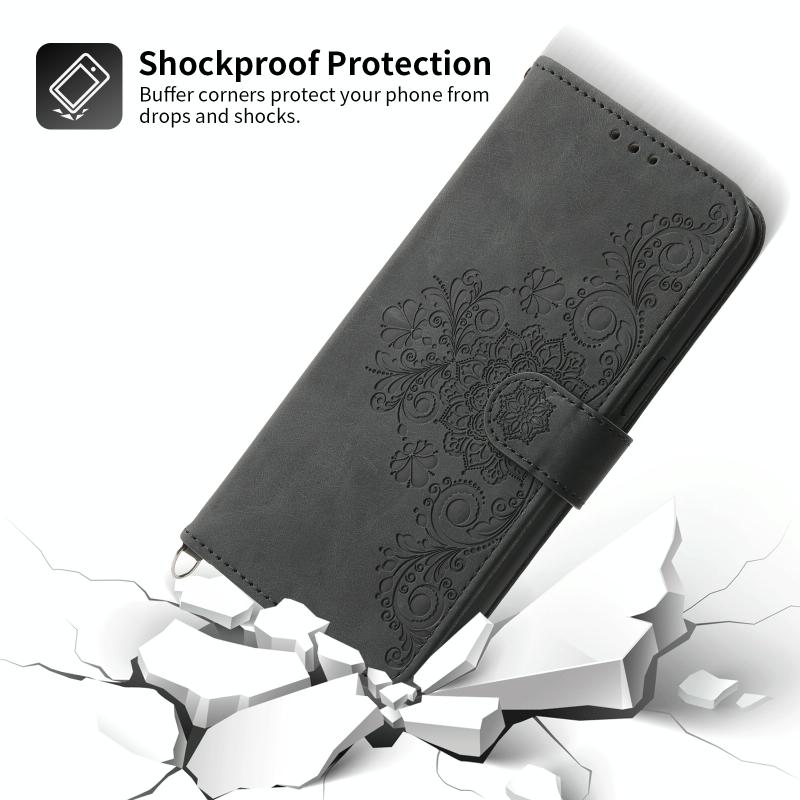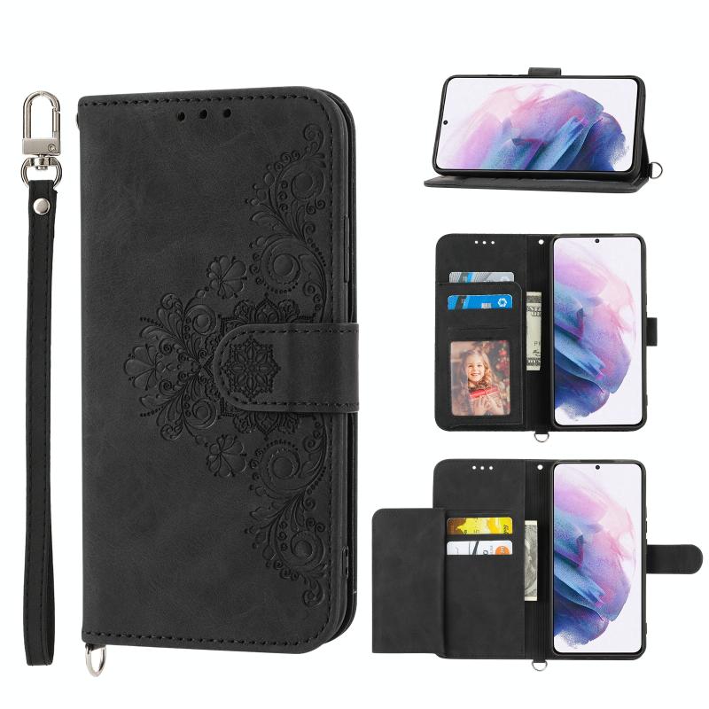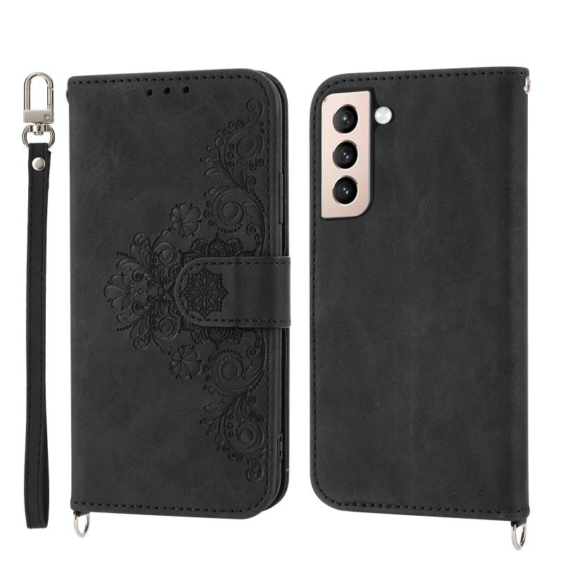 Θήκη τηλεφώνου Samsung Galaxy S21 5G από δέρμα με ανάγλυφα λουλούδια και υφή δέρματος (Μαύρο)