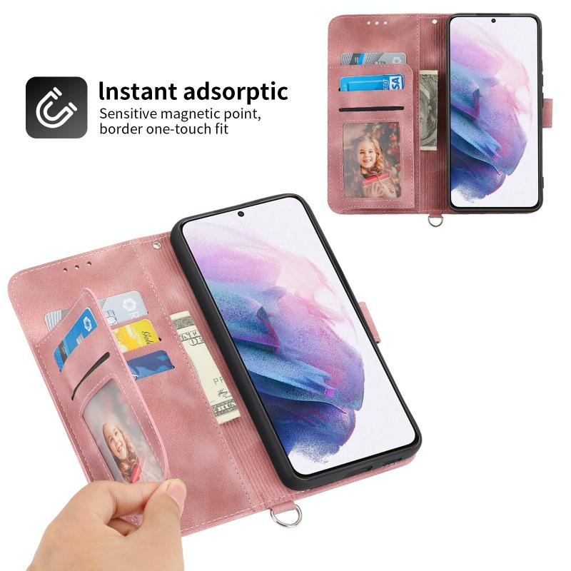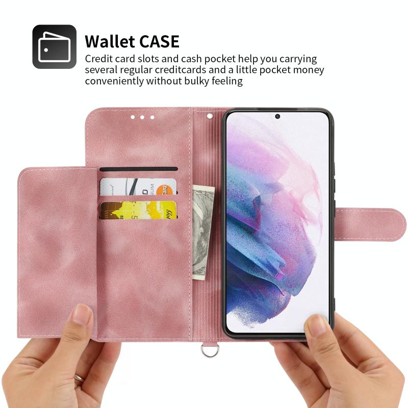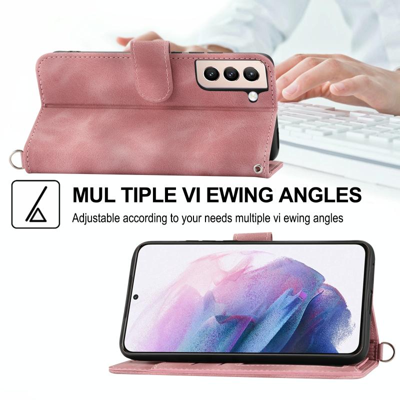 Θήκη τηλεφώνου Samsung Galaxy S21 5G από δέρμα με ανάγλυφα λουλούδια και υφή δέρματος (ρόζ)