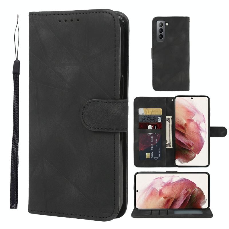 Θήκη τηλεφώνου Samsung Galaxy S21+ 5G από δέρμα με γεωμετρικά σχέδια και αίσθηση δέρματος (Μαύρο)