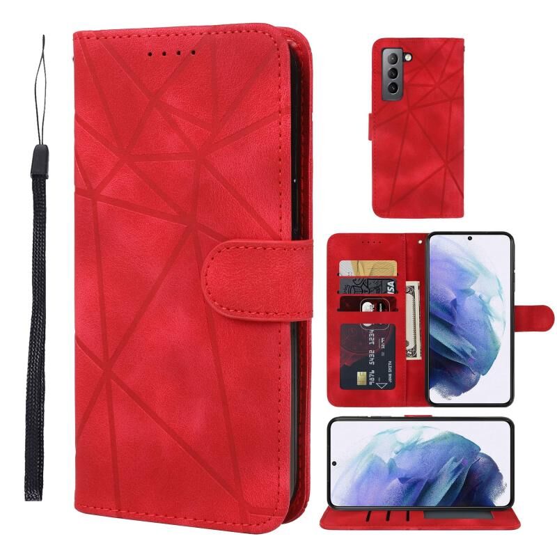 Θήκη τηλεφώνου Samsung Galaxy S21 5G από δέρμα με γεωμετρικά σχέδια και αίσθηση δέρματος (Μαύρο)