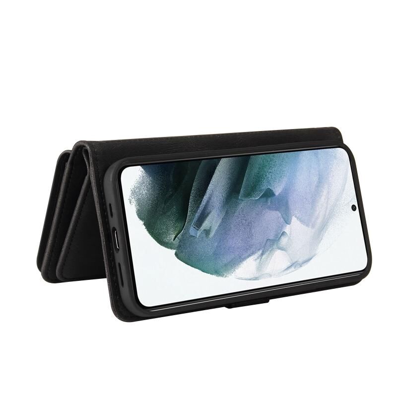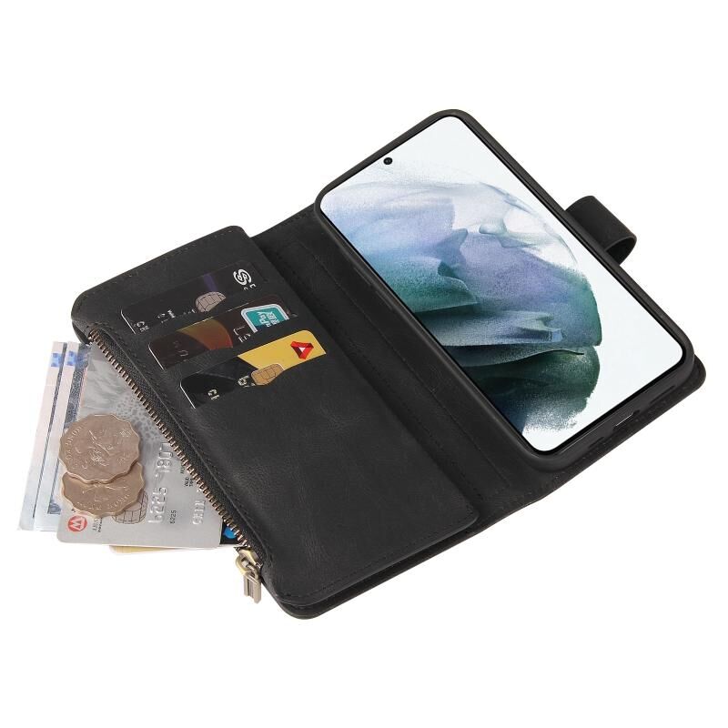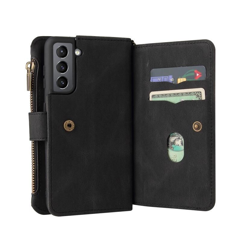 Για το Samsung Galaxy S21 5G Skin Feel PU + TPU Οριζόντια Flip δερμάτινη θήκη με θήκη για 15 κάρτες & υποδοχή & πορτοφόλι & τσέπη με φερμουάρ & κορδόνι (Μαύρο)