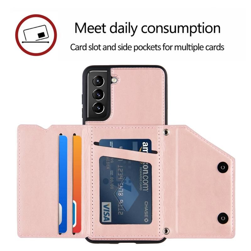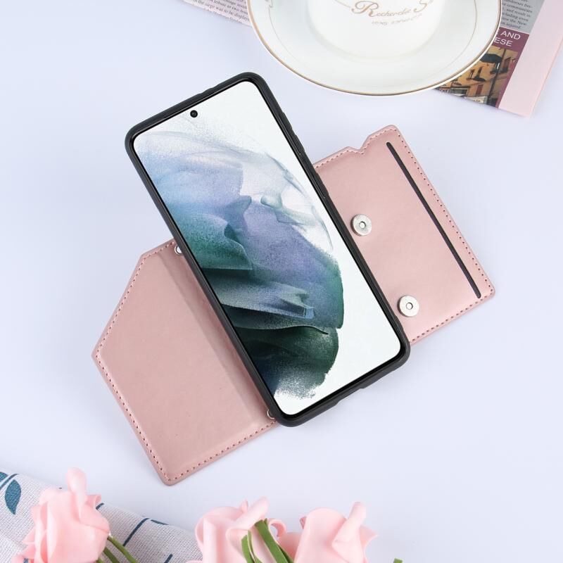 Για το Samsung Galaxy S21+ 5G Skin Feel PU + TPU + PC Back Cover Αδιάβροχη θήκη με υποδοχές για κάρτες & υποδοχή & πλαίσιο φωτογραφιών (ροζ χρυσό)