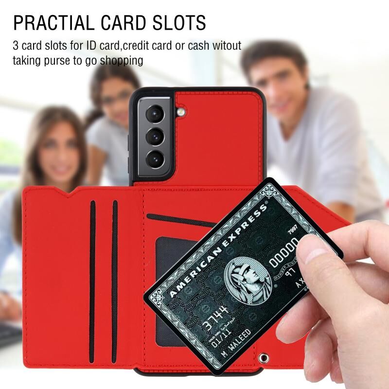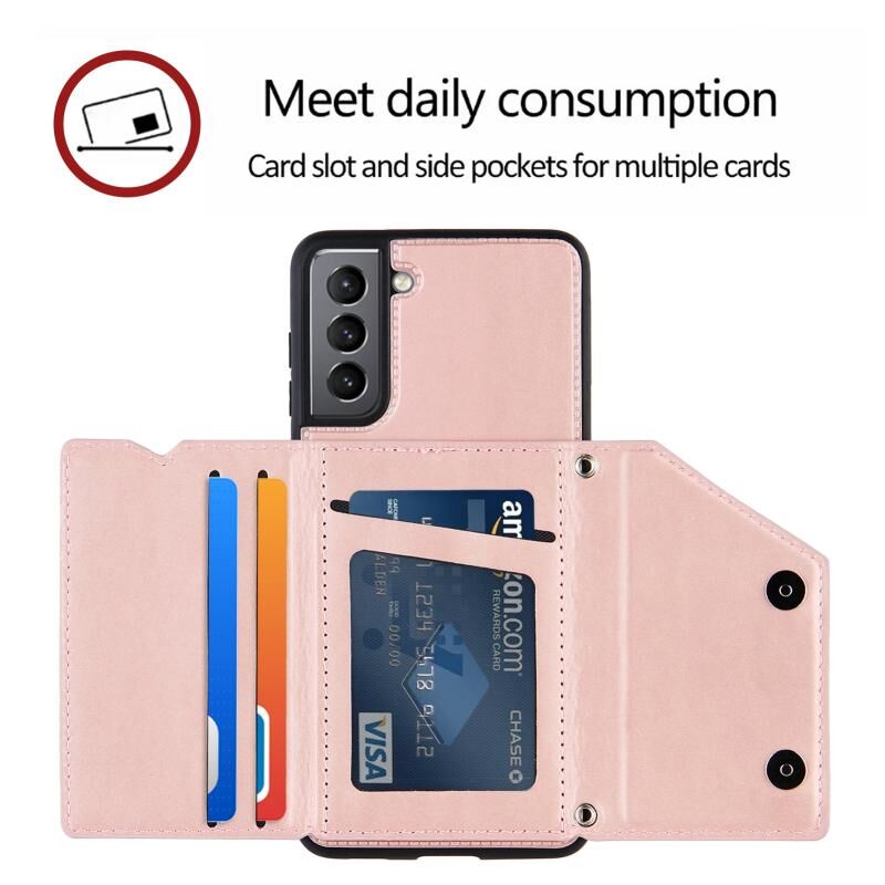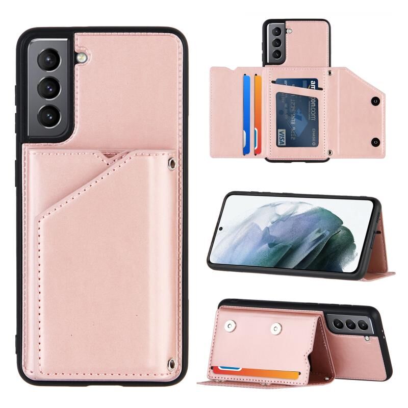 Για το Samsung Galaxy S21 5G Skin Feel PU + TPU + PC πίσω κάλυμμα Αδιάβροχη θήκη με υποδοχές για κάρτες & υποδοχή & πλαίσιο φωτογραφιών (ροζ χρυσό)