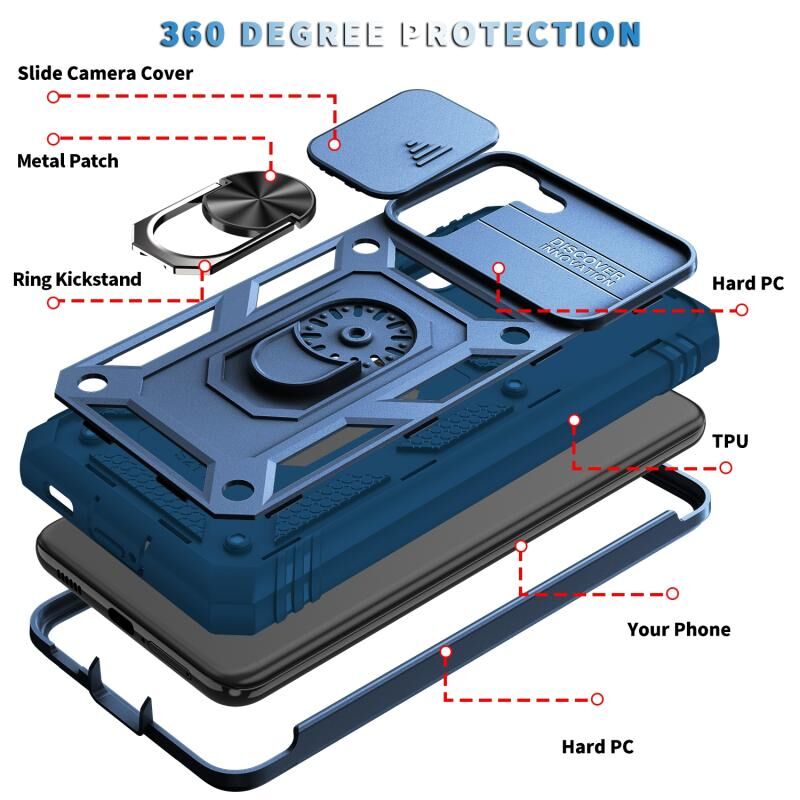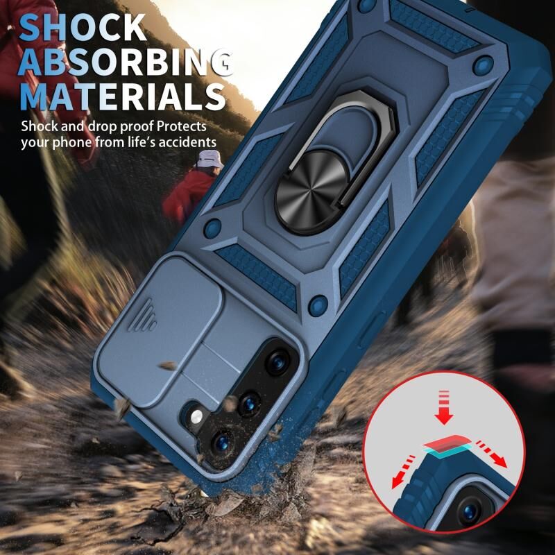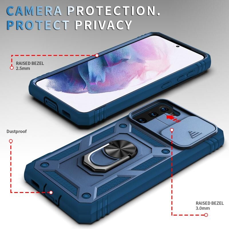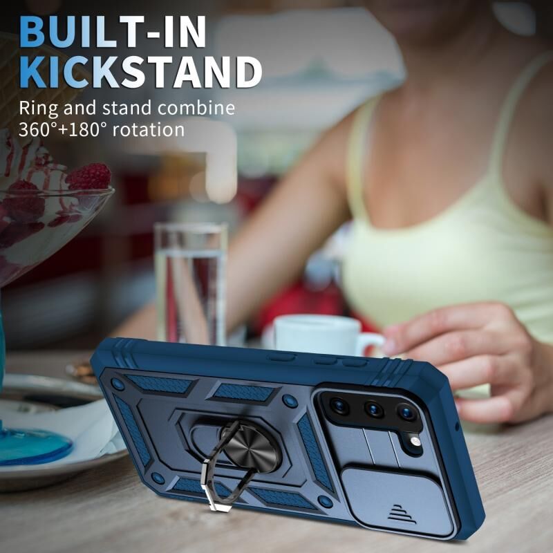 Για Samsung Galaxy S21 5G συρόμενη κάμερα κάλυμμα Design TPU + PC προστατευτική θήκη με 360 μοίρες περιστρεφόμενη θήκη & υποδοχή κάρτας (μπλε + μπλε)