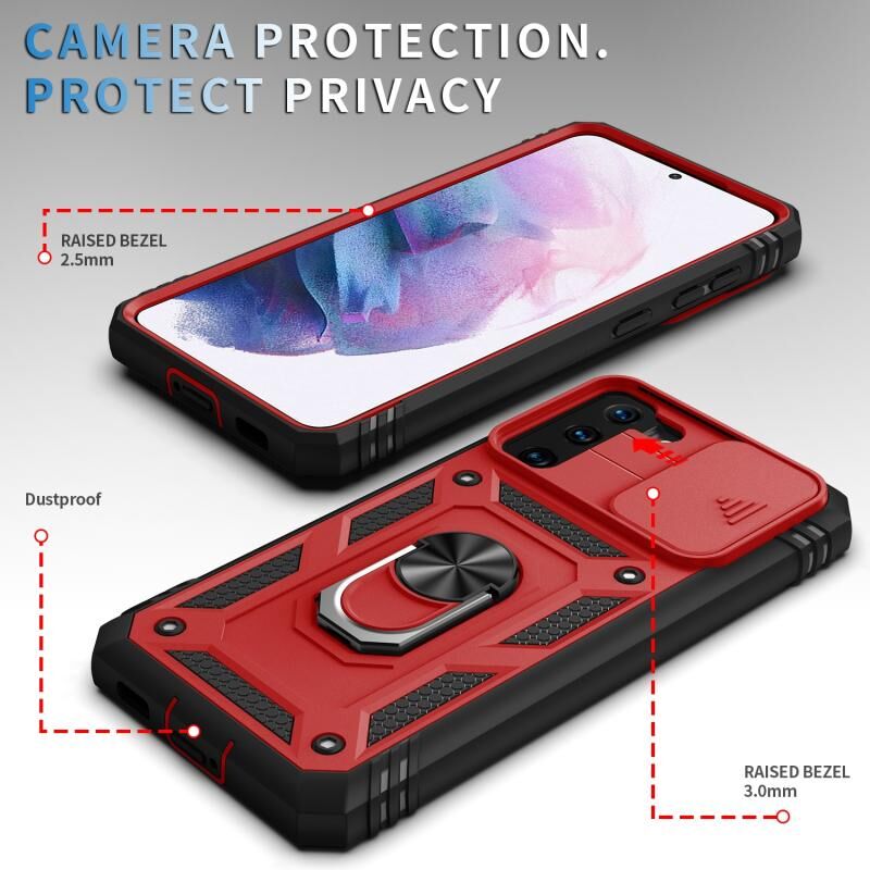 Για Samsung Galaxy S21 5G συρόμενη κάμερα κάλυμμα Design TPU + PC προστατευτική θήκη με 360 μοίρες περιστρεφόμενη θήκη & υποδοχή κάρτας (κόκκινο + μαύρο)