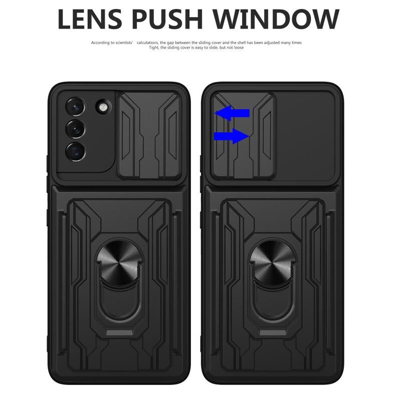 Για Samsung Galaxy S21+ 5G συρόμενη θήκη τηλεφώνου Camshield Card (σκούρο πράσινο)