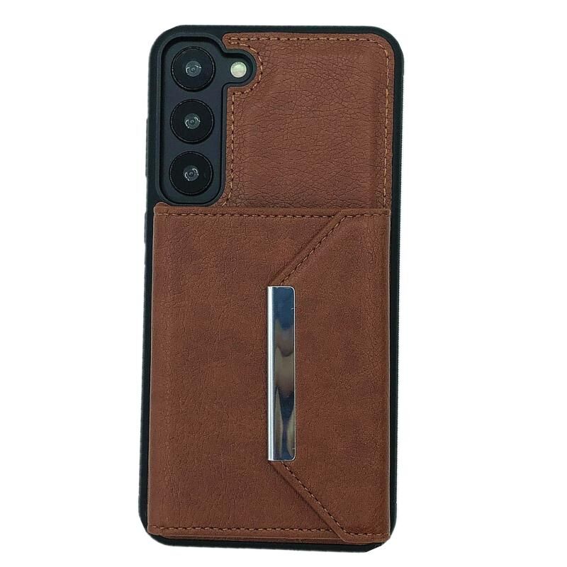 Για Samsung Galaxy S21 5G Αμιγές χρώμα μέταλλο πόρπη κάρτα υποδοχές τσάντα υπόθεση τηλεφώνου (καφέ)