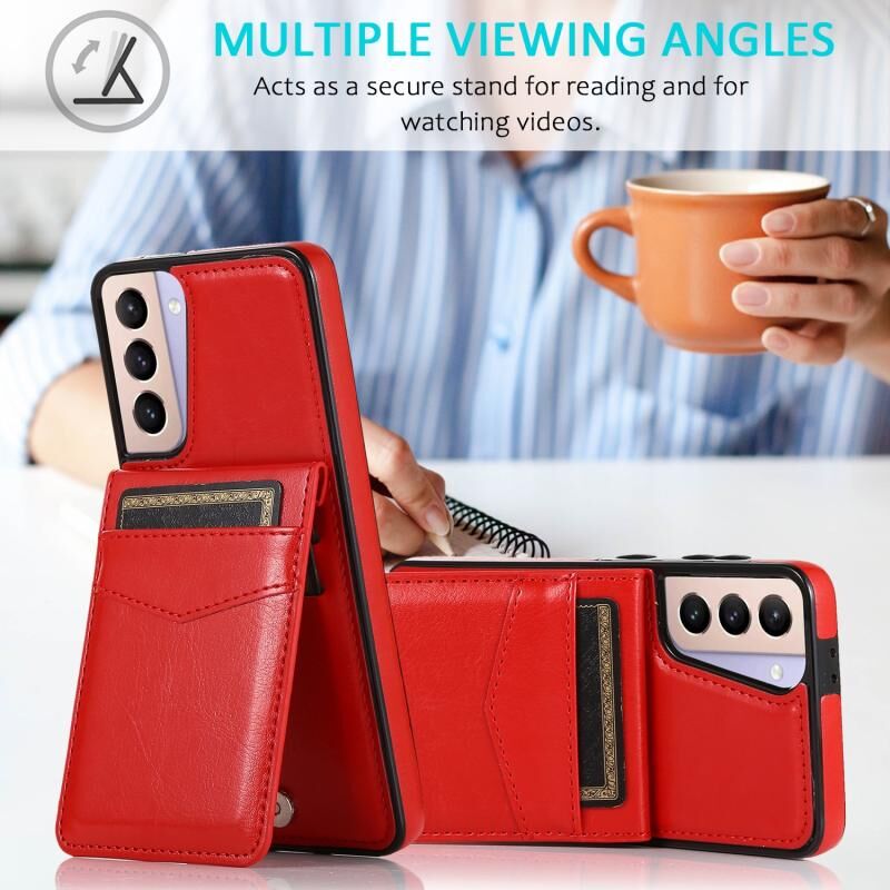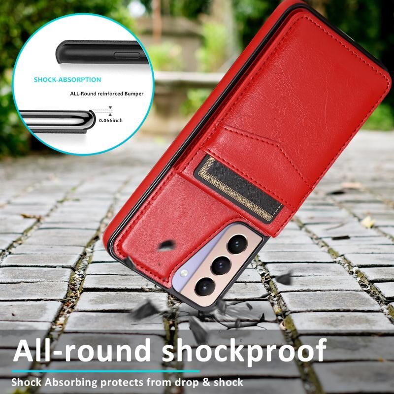 Για Samsung Galaxy S21 5G Αμιγές χρώμα PC + TPU προστατευτική θήκη με θήκη & υποδοχές για κάρτες (κόκκινο)