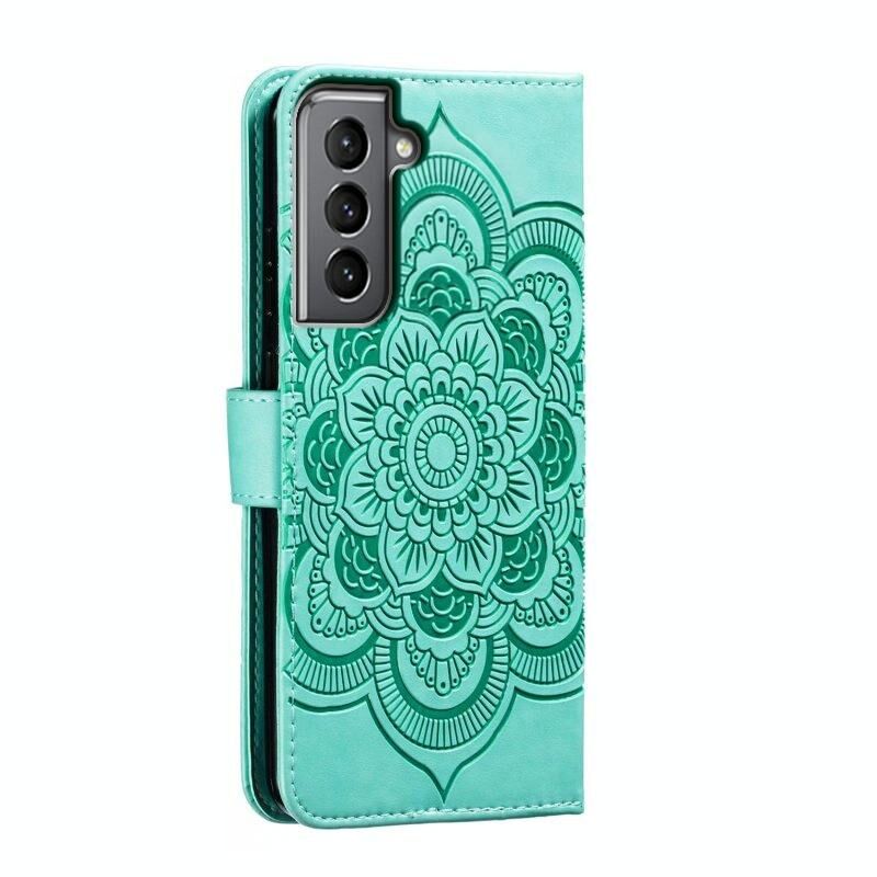 Για Samsung Galaxy S21 5G Sun Mandala ανάγλυφο μοτίβο τηλέφωνο δερμάτινη θήκη (πράσινο)