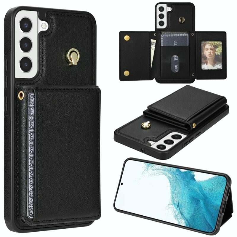 Για Samsung Galaxy S21+ 5G Τρεις φορές κάρτα τσάντα θήκη τηλεφώνου με μακρύ κορδόνι (Μαύρο)
