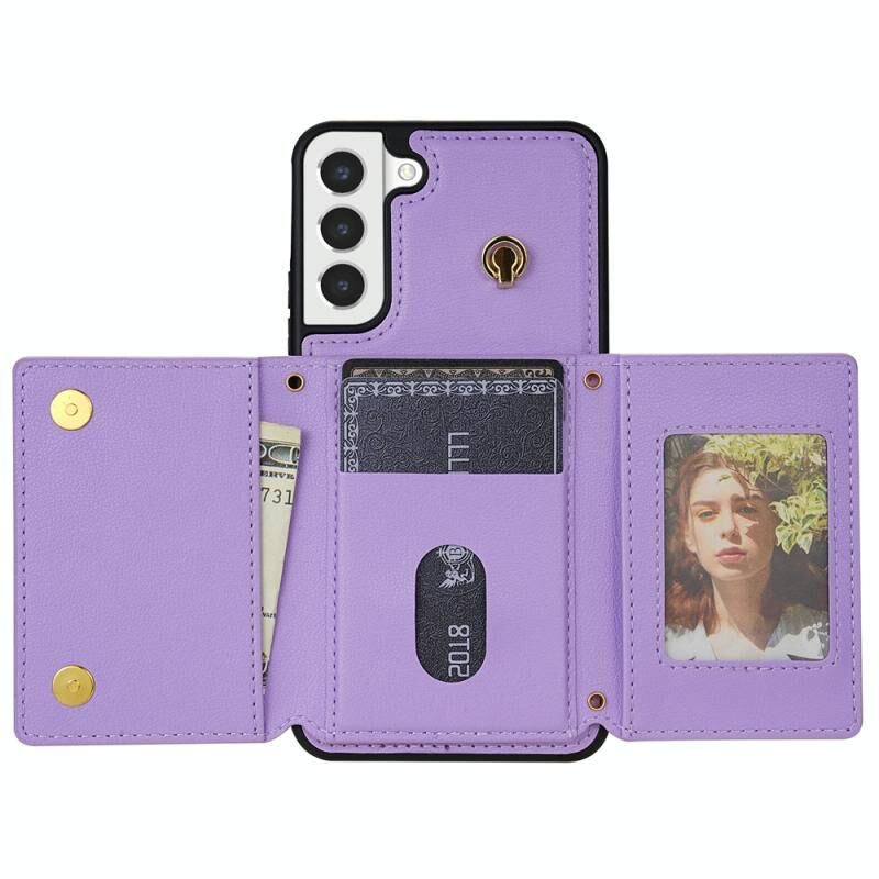 Για το Samsung Galaxy S21 5G Τρεις φορές κάρτα τσάντα υπόθεση τηλεφώνου με μακρύ κορδόνι (μωβ)