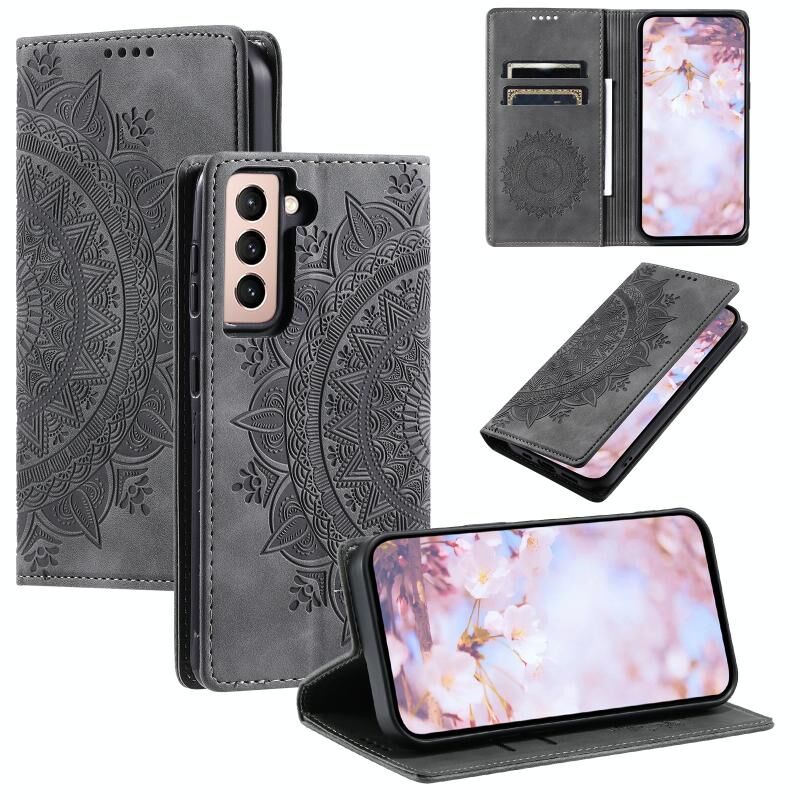 Για Samsung Galaxy S21 5G Totem ανάγλυφη μαγνητική δερμάτινη θήκη τηλεφώνου (γκρι)