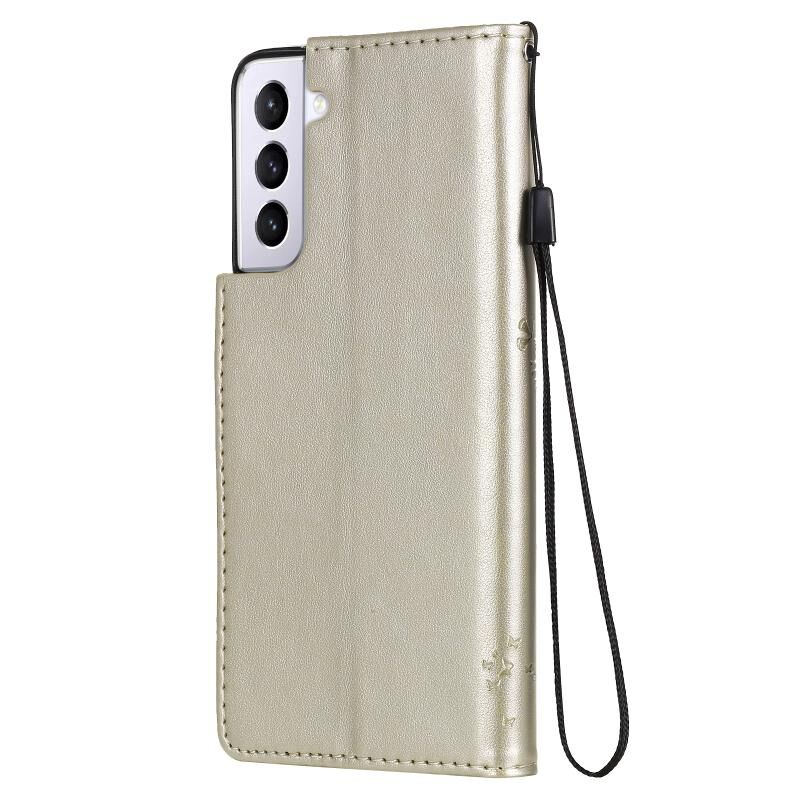 Για Samsung Galaxy S21+ 5G Δέντρο & Γάτα μοτίβο εκτύπωσης οριζόντια Flip PU δερμάτινη θήκη με θήκη & υποδοχές για κάρτες & πορτοφόλι & κορδόνι (χρυσό)