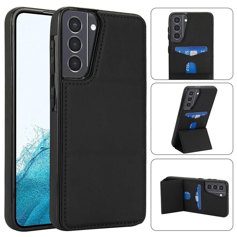For Samsung Galaxy S21+ 5G Tri-fold Holder Leather Phone Case with Card Slot(Black)