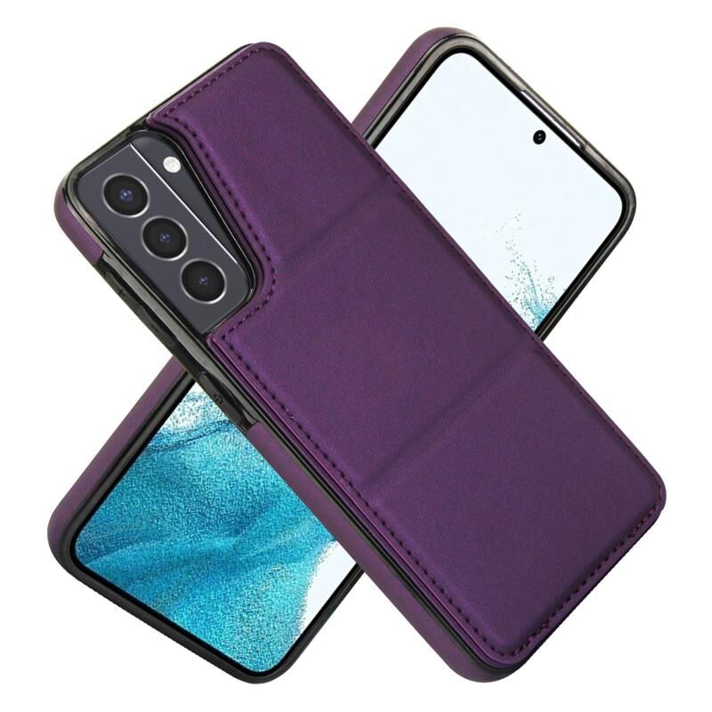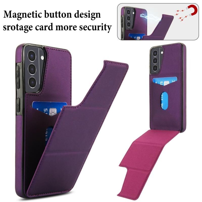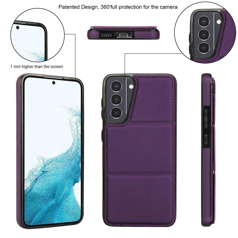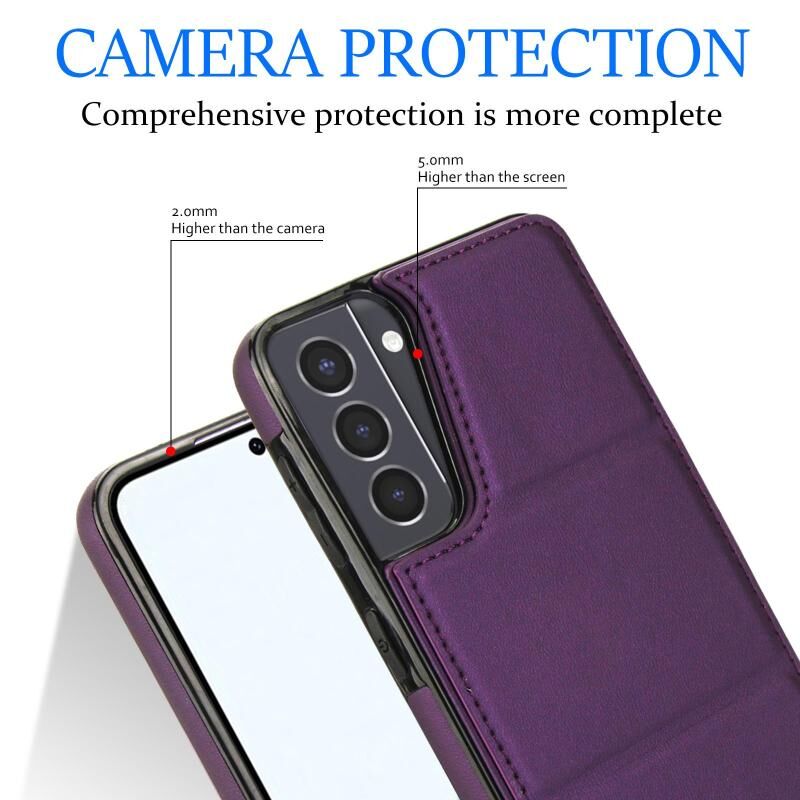 For Samsung Galaxy S21 5G Tri-fold Holder Leather Phone Case with Card Slot(Dark Purple)