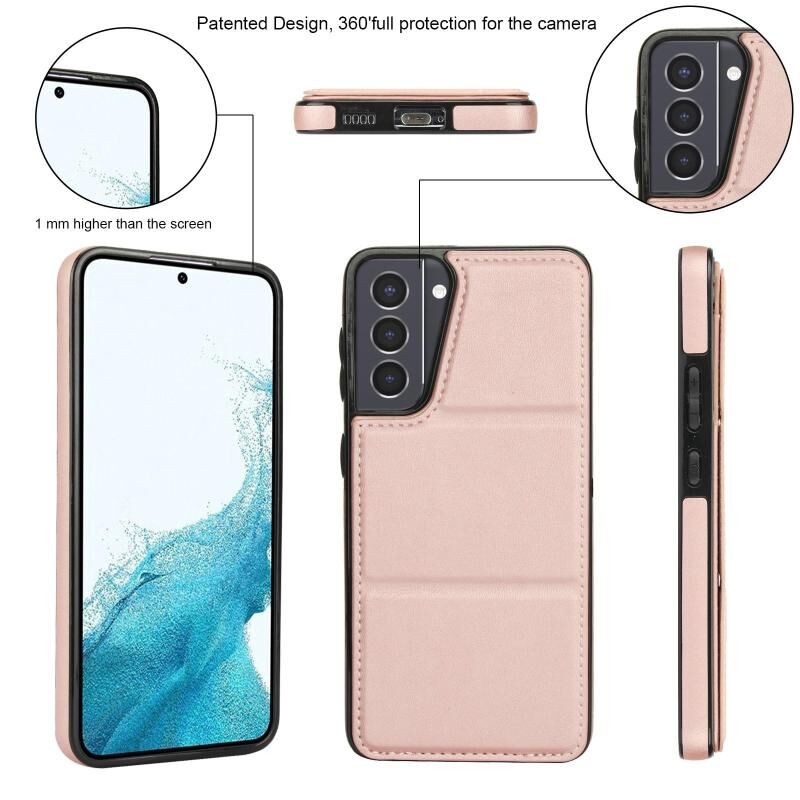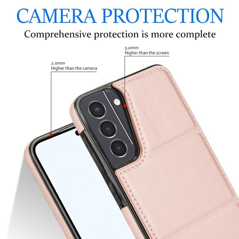 Θήκη τηλεφώνου δέρματινη για Samsung Galaxy S21 5G, τριπλή, με θήκη για κάρτες (Χρυσό ροζ)
