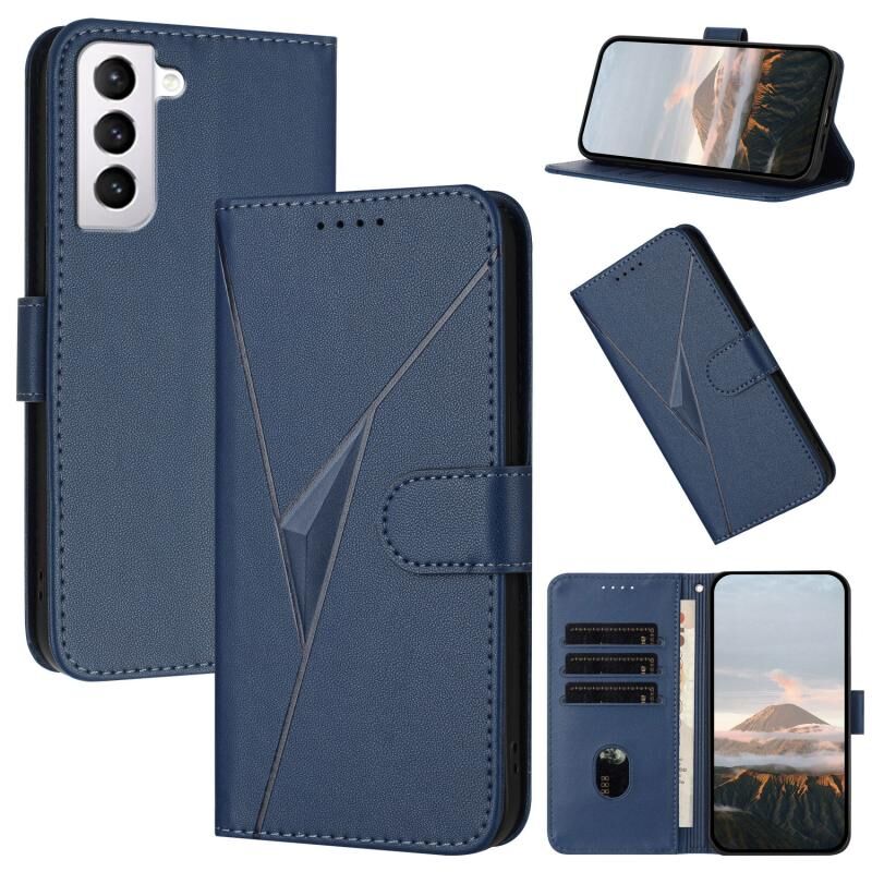 Για Samsung Galaxy S21 5G Τρίγωνο μοτίβο αγκράφα κούμπωμα δερμάτινη θήκη τηλεφώνου (Royal Blue)