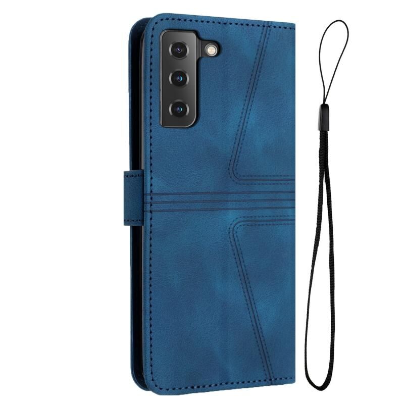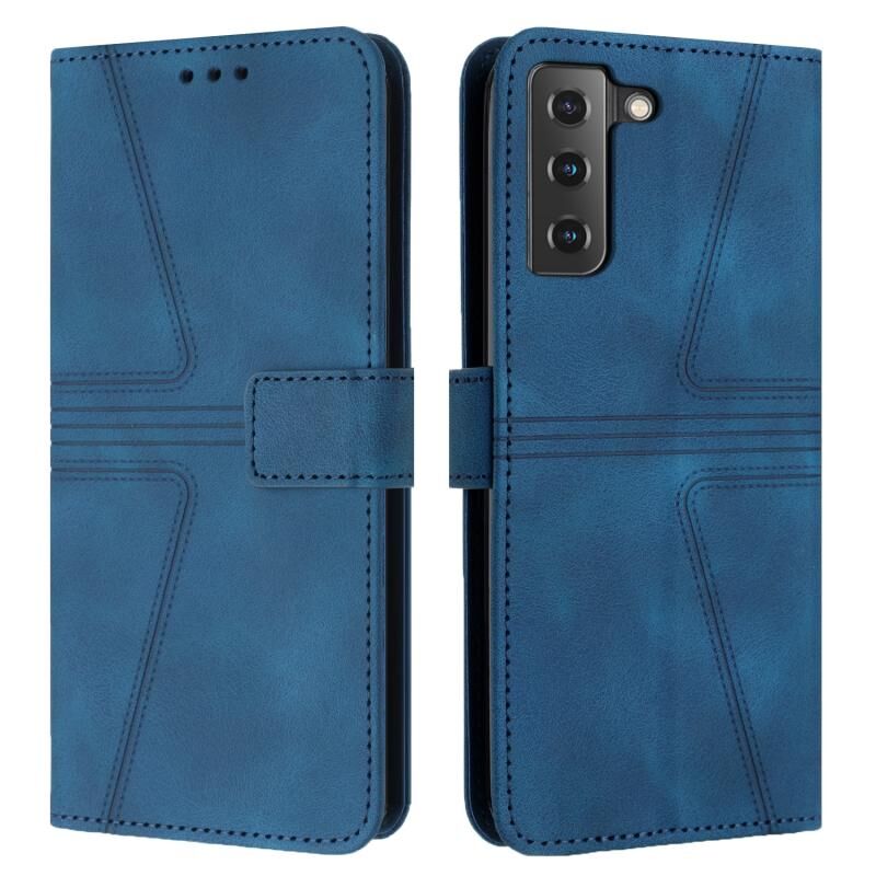 Για Samsung Galaxy S21+ 5G Τρίγωνο στερεό χρώμα δερμάτινη θήκη τηλεφώνου (μπλε)