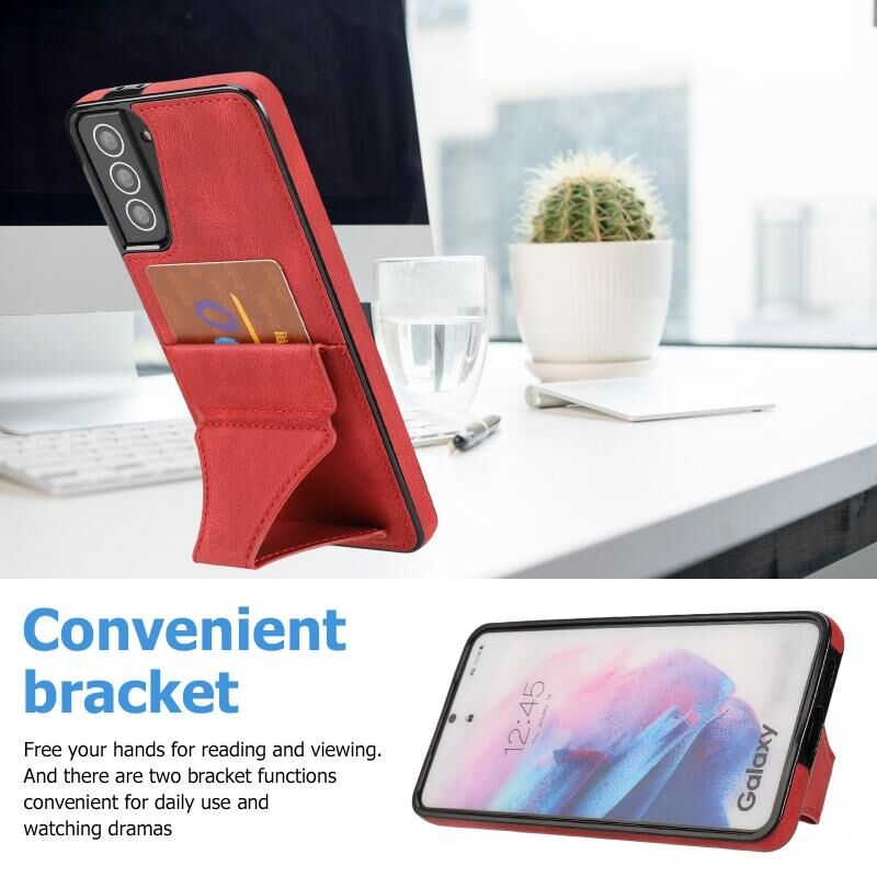 Θήκη προστασίας για Samsung Galaxy S21 5G, εξαιρετικά λεπτή, αντικραδασμική με βάση στήριξης & μεταλλική μαγνητική λειτουργία (Χρυσορόδινο)