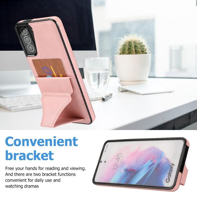 Θήκη προστασίας για Samsung Galaxy S21 5G, εξαιρετικά λεπτή, αντικραδασμική με βάση στήριξης & μεταλλική μαγνητική λειτουργία (Χρυσορόδινο)