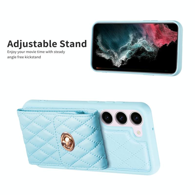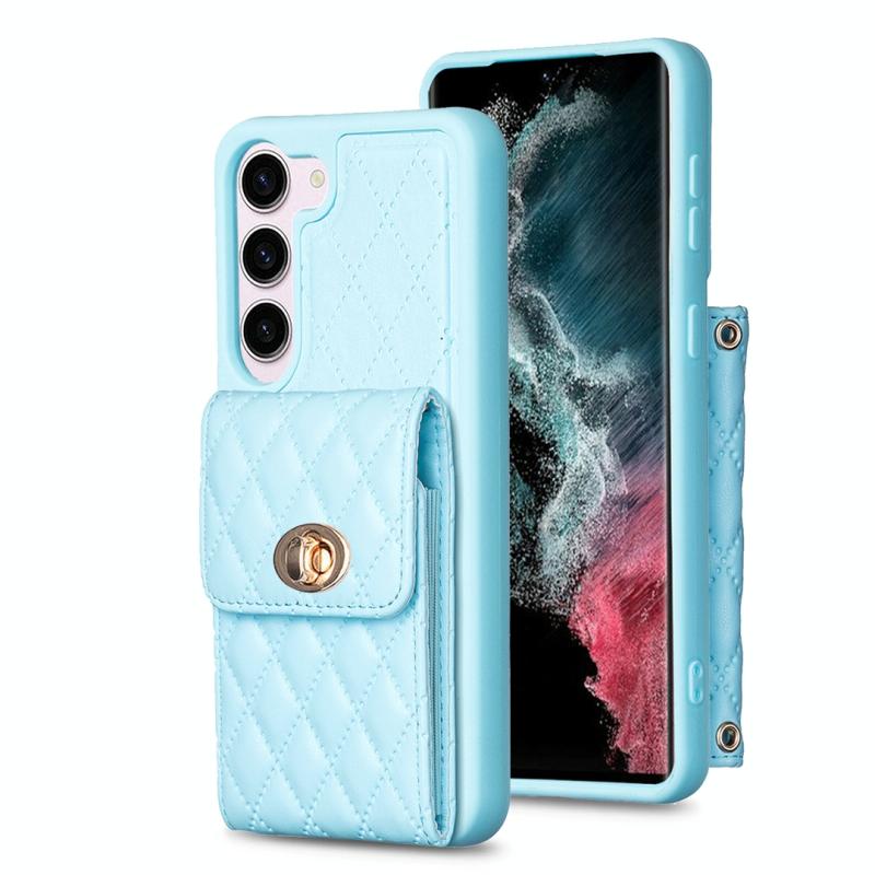 Θήκη τηλεφώνου Samsung Galaxy S21 5G, κάθετη μεταλλική αγκράφα, πορτοφόλι, δερμάτινη με ρόμβους (Μπλε)