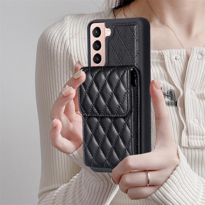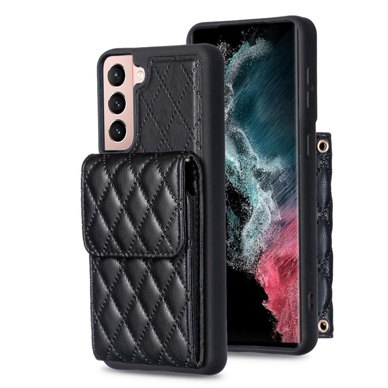 Θήκη τηλεφώνου Samsung Galaxy S21 5G κάθετη, πορτοφόλι, δερμάτινη με ρόμβους (Μαύρο)