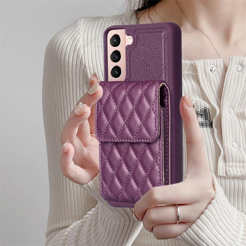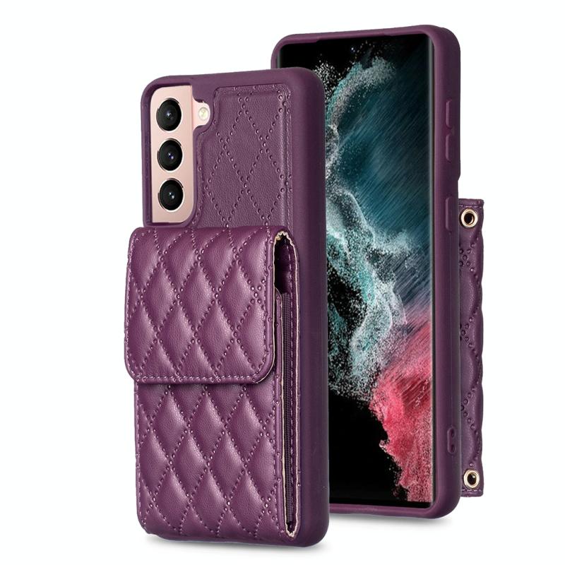 Θήκη τηλεφώνου Samsung Galaxy S21 5G κάθετη, πορτοφόλι, δερμάτινη με ρόμβους (Σκούρο μωβ)