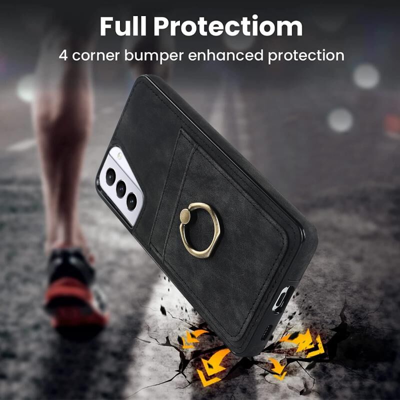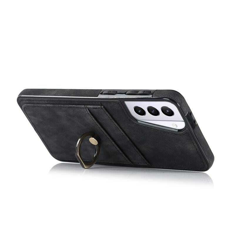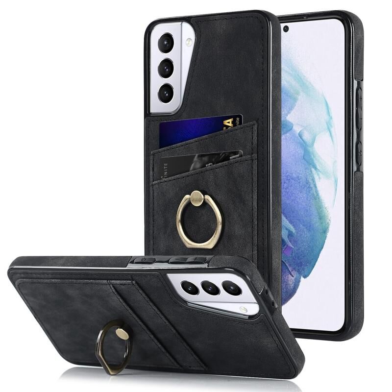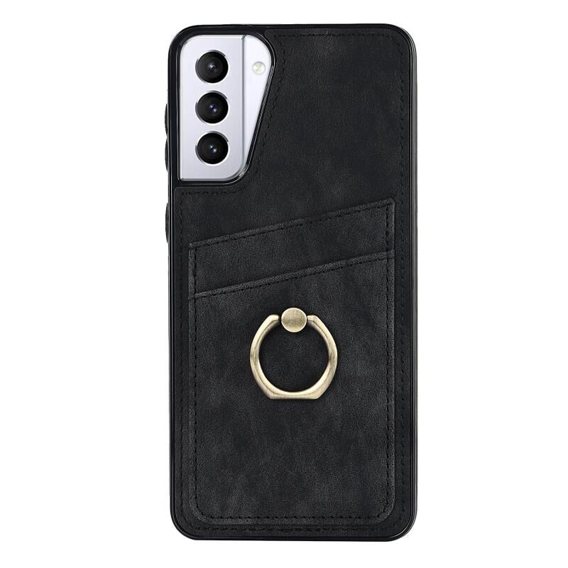 Για Samsung Galaxy S21 5G Vintage Patch δερμάτινη θήκη τηλεφώνου με θήκη δαχτυλιδιού (μαύρο)