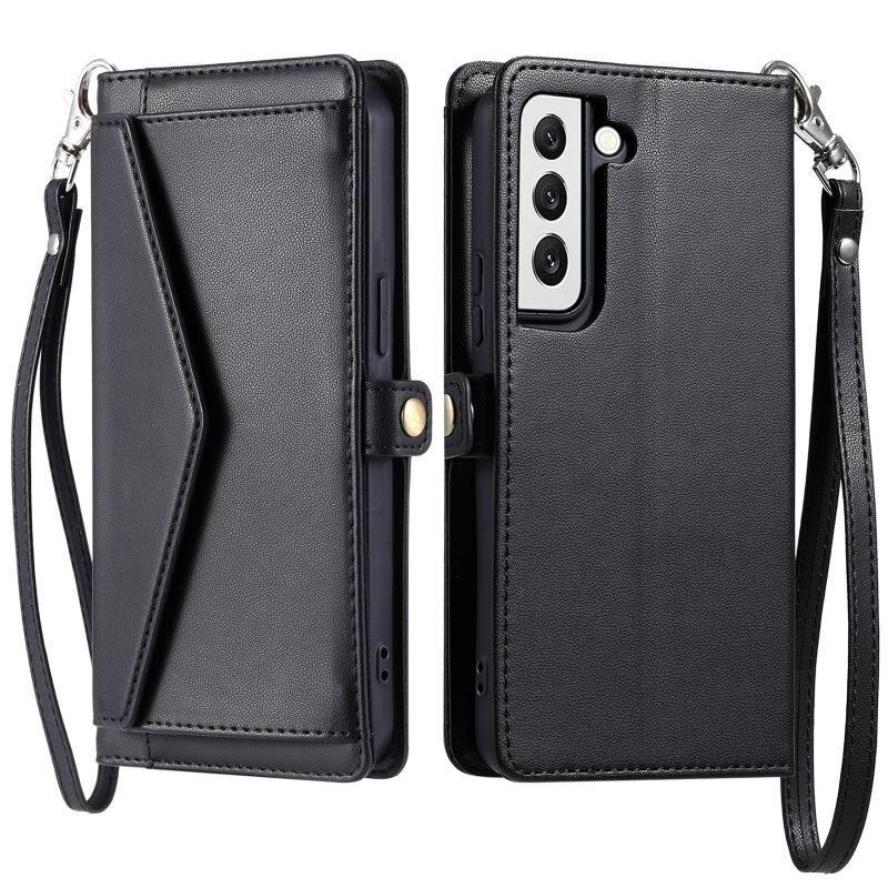 Για Samsung Galaxy S21 5G Πορτοφόλι Multi-card Slot Δερμάτινη θήκη τηλεφώνου με κορδόνι (Μαύρο)