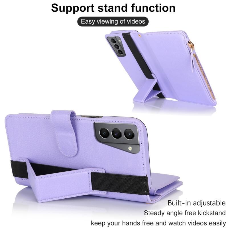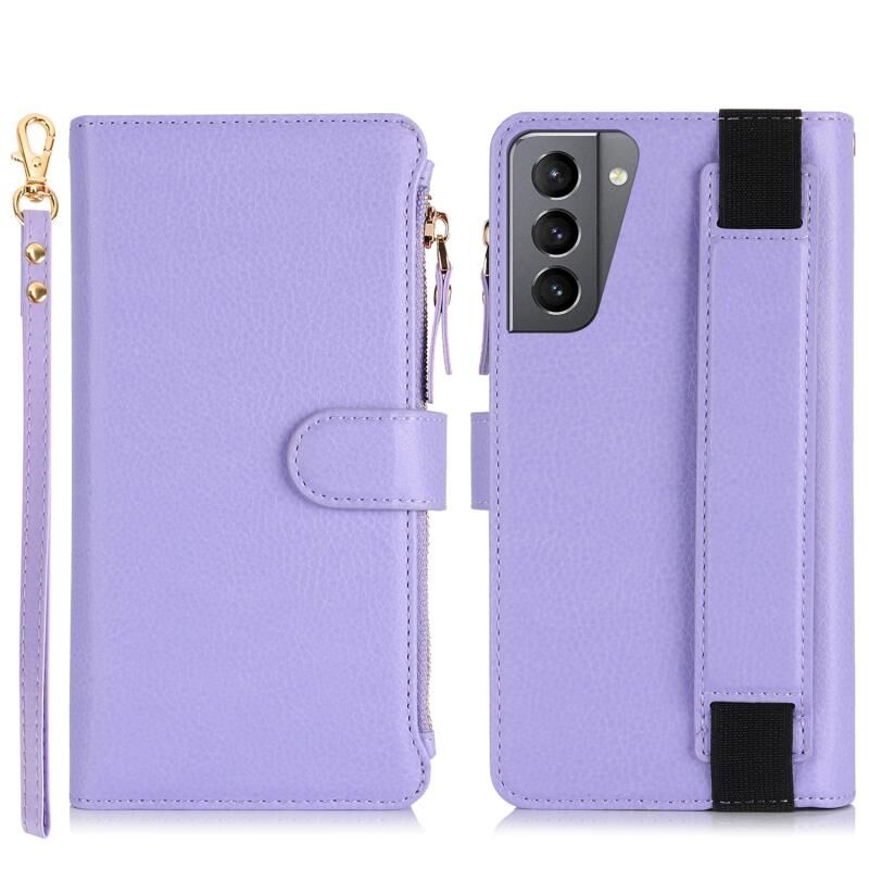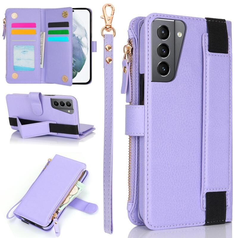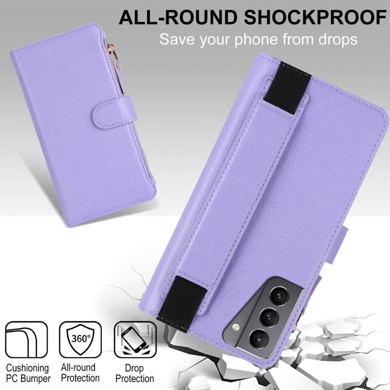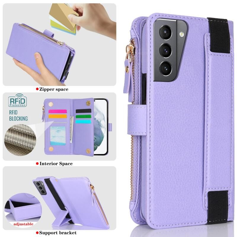 Για Samsung Galaxy S21 + 5G Wristband κάτοχος φερμουάρ πορτοφόλι RFID δερμάτινη θήκη τηλεφώνου (Μωβ)