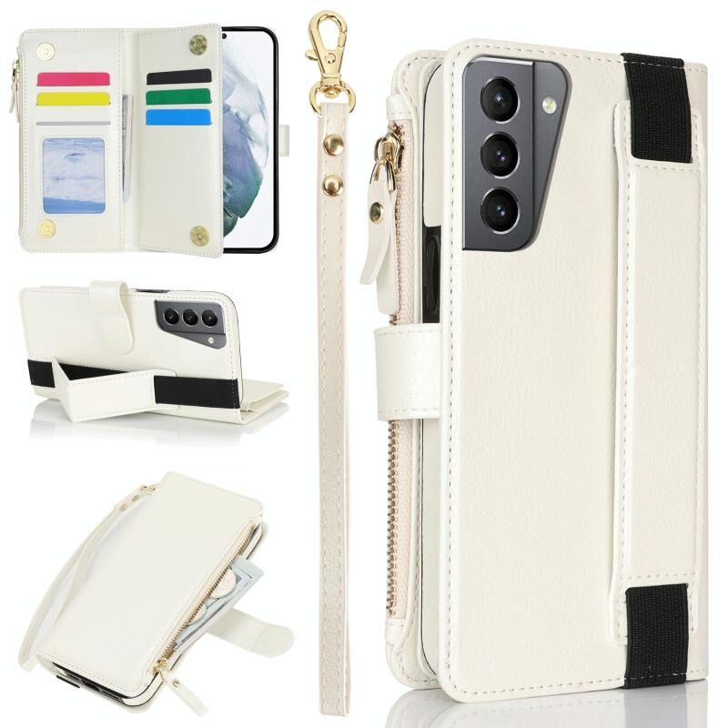 Για Samsung Galaxy S21 5G Wristband κάτοχος φερμουάρ πορτοφόλι RFID δερμάτινη θήκη τηλεφώνου (Λευκό)