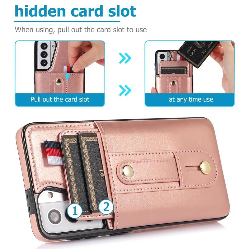 Για Samsung Galaxy S21+ 5G Wristband Kickstand πορτοφόλι δερμάτινη θήκη τηλεφώνου (ροζ χρυσό)