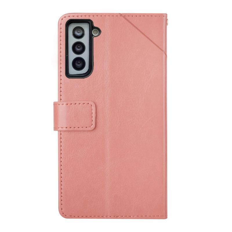 Για Samsung Galaxy S21 5G Y Stitching Οριζόντια Flip δερμάτινη θήκη με θήκη & υποδοχές για κάρτες & πορτοφόλι & κορνίζα φωτογραφιών (ροζ χρυσό)