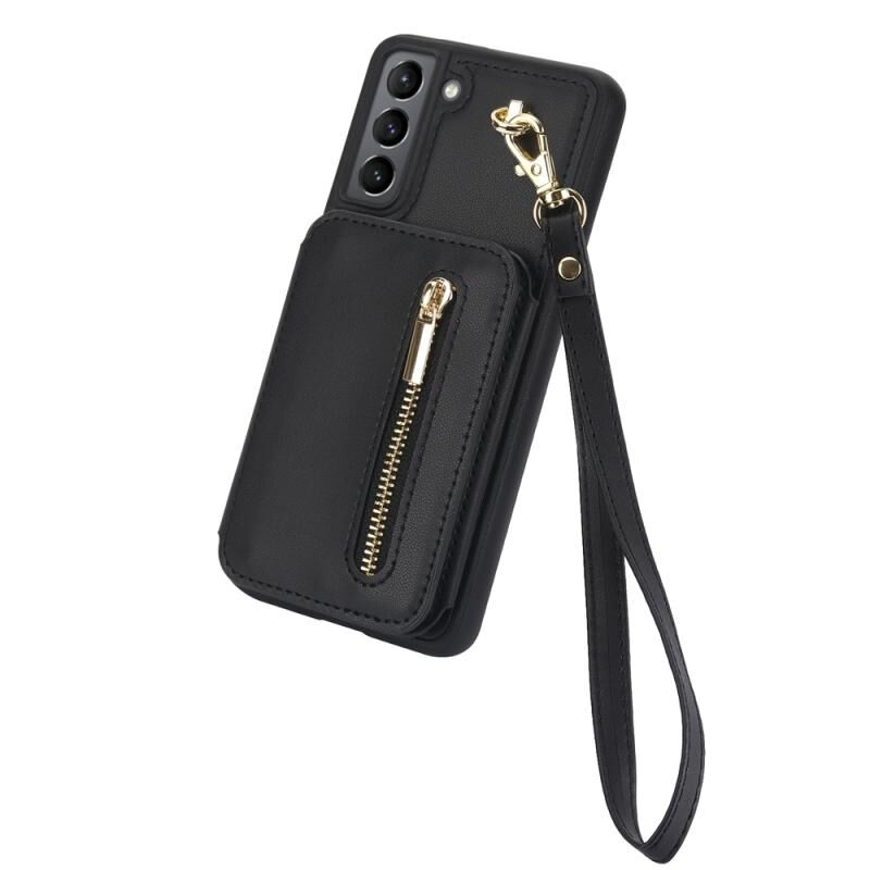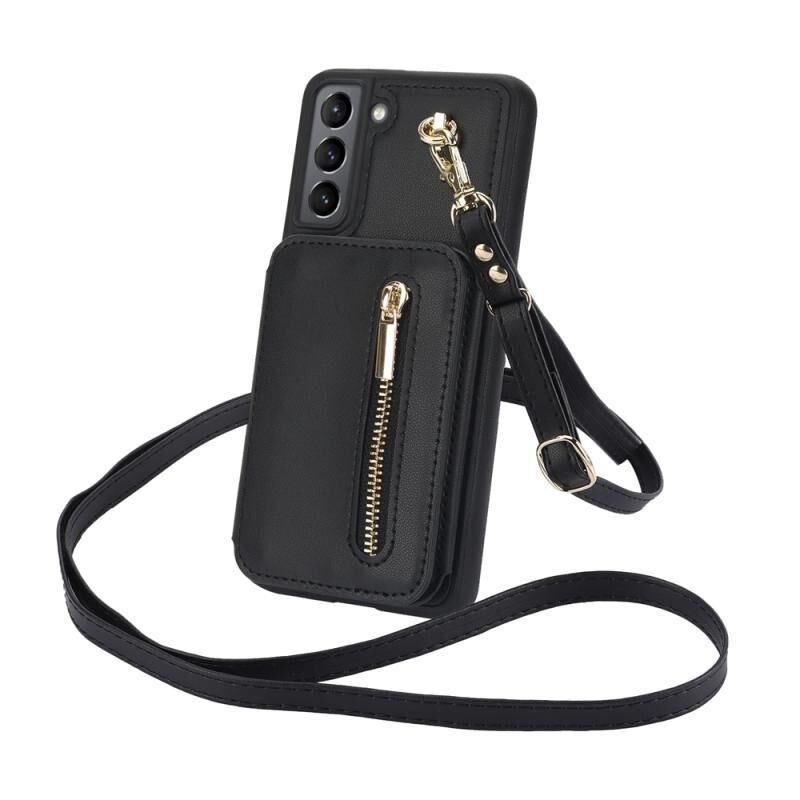 Για Samsung Galaxy S21 5G YM006 δέρμα αίσθηση φερμουάρ κάρτα τσάντα υπόθεση τηλεφώνου με διπλό κορδόνι (μαύρο)