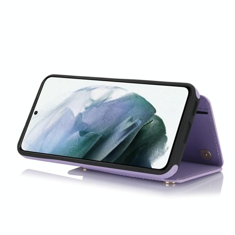 Για Samsung Galaxy S21 5G YM006 δέρμα αίσθηση φερμουάρ τσάντα κάρτα υπόθεση τηλεφώνου με διπλή κορδόνι (Light Purple)