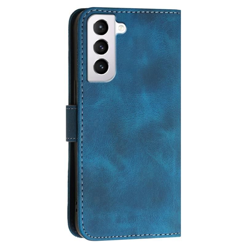 For Samsung Galaxy S21 5G YX0080 Grid Butterfly Embossed Pattern Flip Leather Phone Case with Lanyard(Dark Blue)