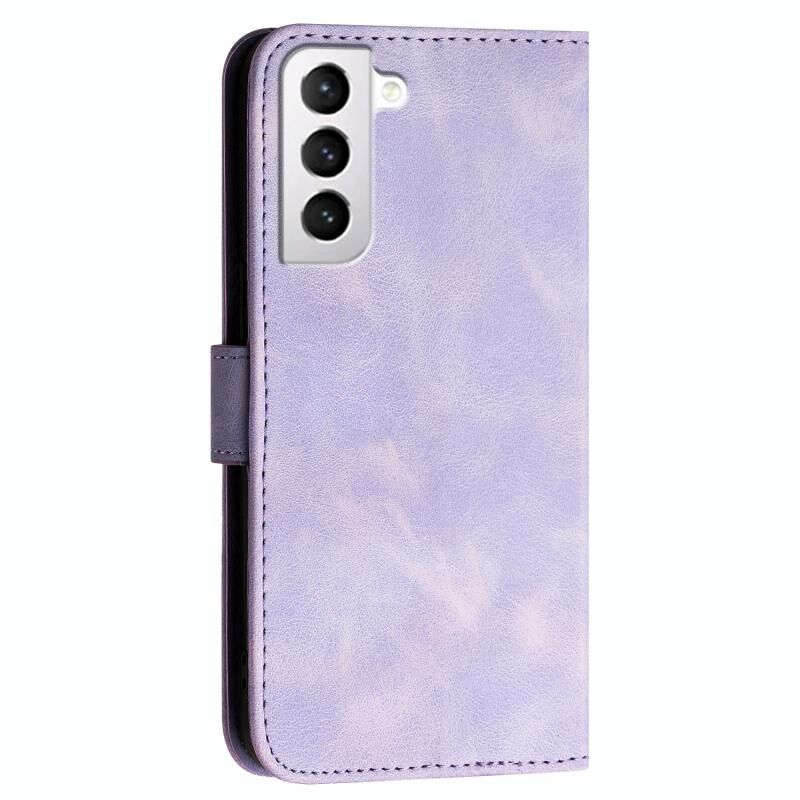 For Samsung Galaxy S21 5G YX0080 Grid Butterfly Embossed Pattern Flip Leather Phone Case with Lanyard(Light Purple)