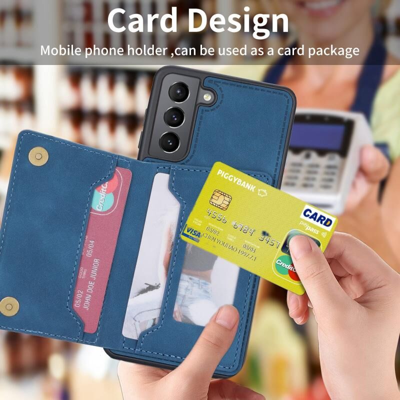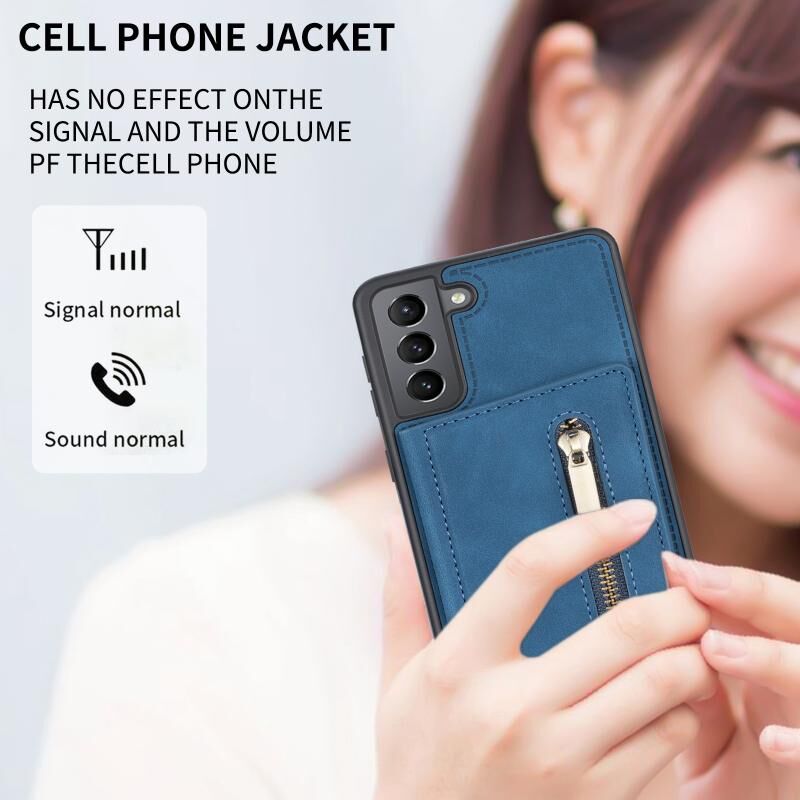 Θήκη κινητού τηλεφώνου με φερμουάρ και θήκη καρτών για Samsung Galaxy S21+ 5G (Μαύρο)