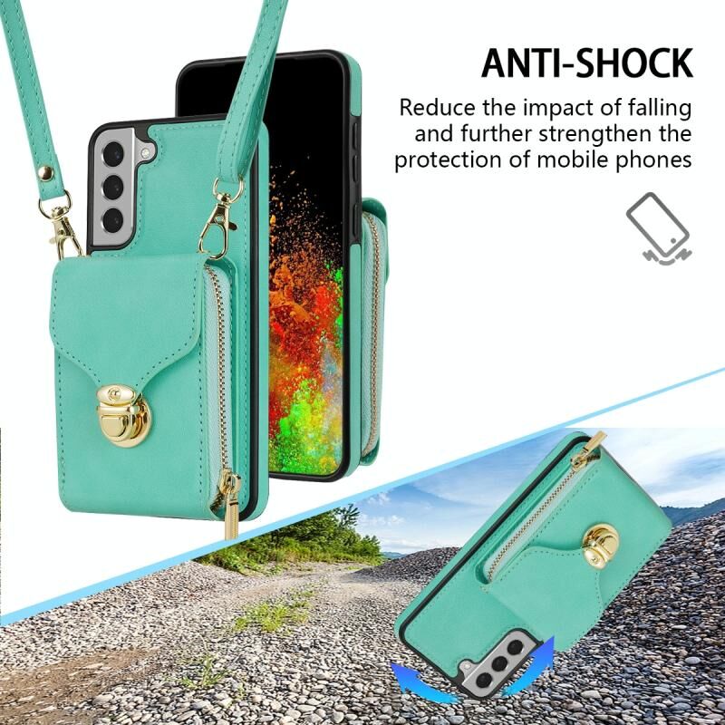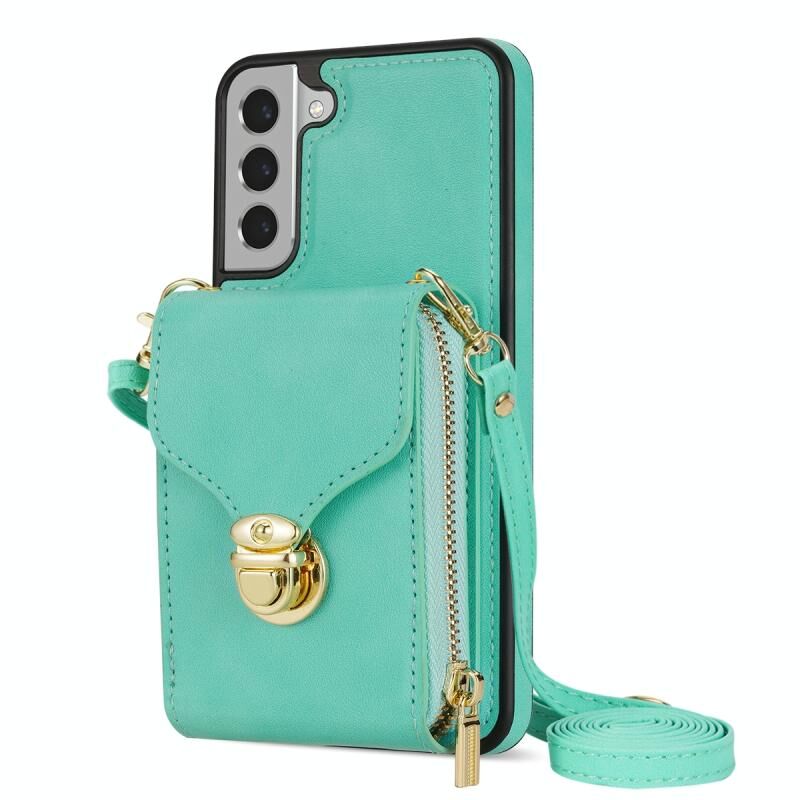 Για Samsung Galaxy S21 + 5G φερμουάρ υλικό κάρτα πορτοφόλι υπόθεση τηλεφώνου (πράσινο χρώμα)