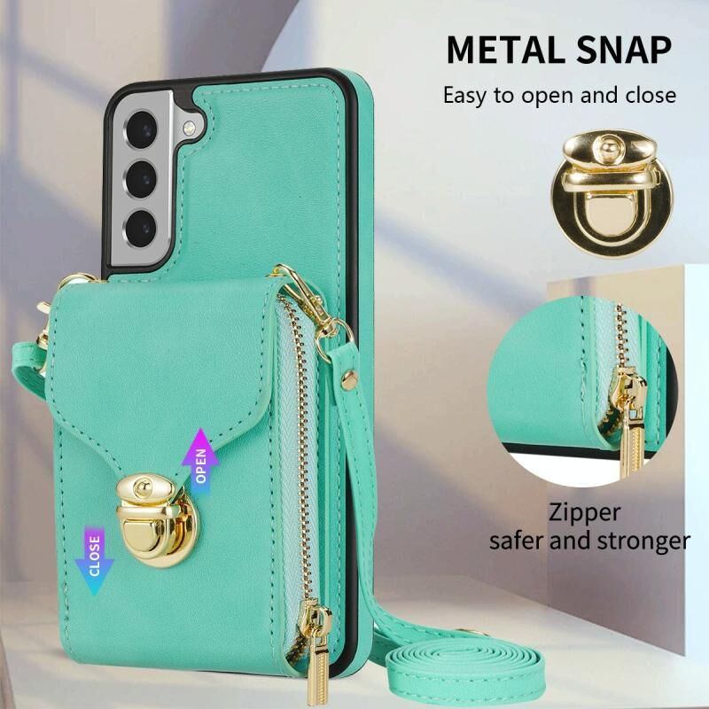 Για Samsung Galaxy S21 5G φερμουάρ υλικό κάρτα πορτοφόλι υπόθεση τηλεφώνου (πράσινο χρώμα)