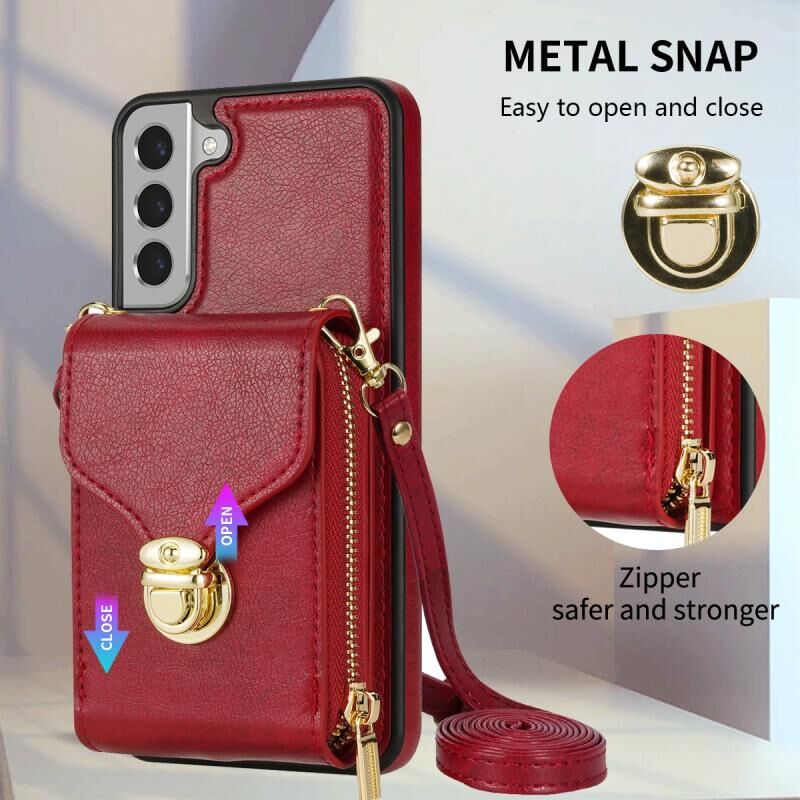 Για Samsung Galaxy S21+ 5G φερμουάρ υλικό κάρτα πορτοφόλι τηλέφωνο υπόθεση (κόκκινο)