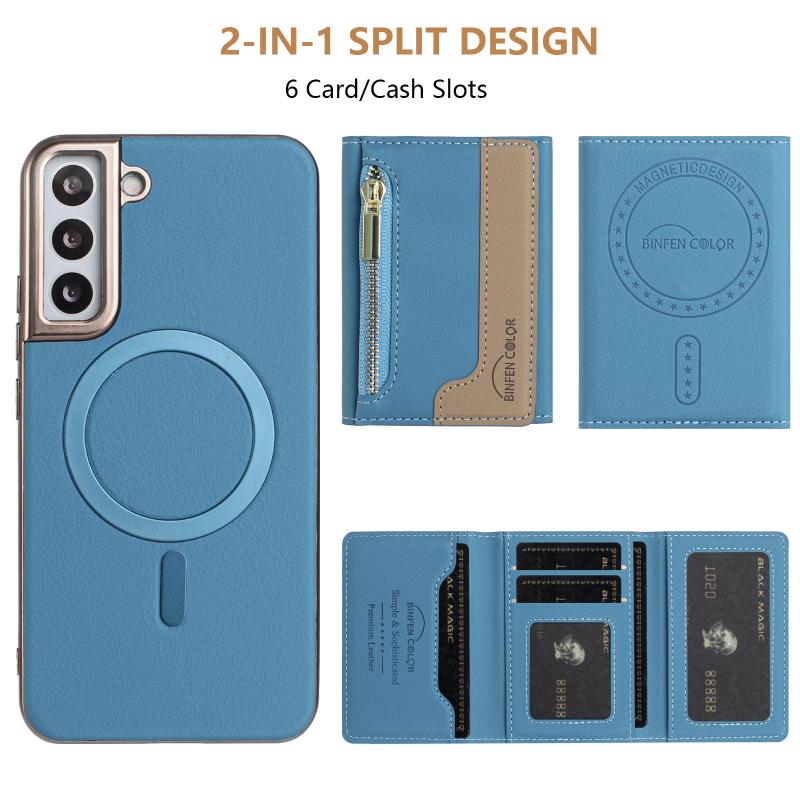 For Samsung Galaxy S21+ 5G Zipper Horizontal Magnetic Card Bag RFID MagSafe Phone Case(Baby Blue)