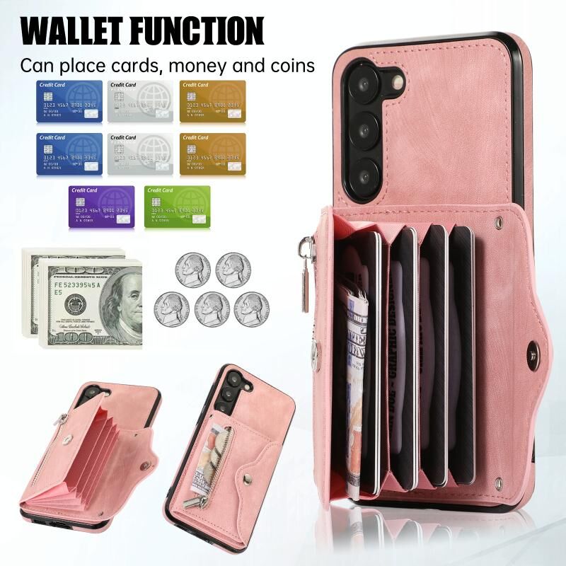 Για Samsung Galaxy S21 5G φερμουάρ RFID υποδοχές καρτών τηλέφωνο υπόθεση με σύντομο κορδόνι (Rose Gold)