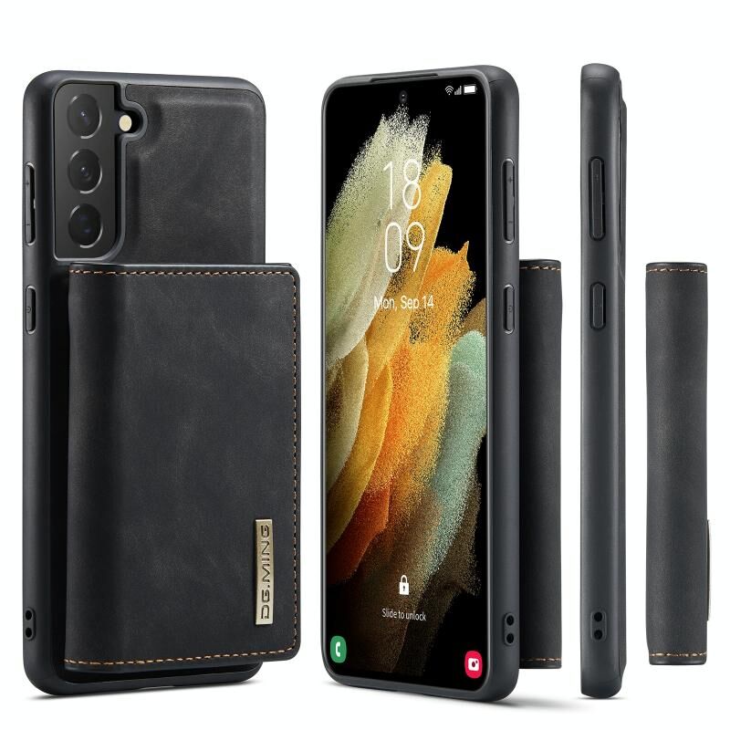 Για Samsung Galaxy S21+ DG.MING M1 Series θήκη πορτοφολιού τριπλής αναδίπλωσης με αντικραδασμική προστασία και λειτουργία βάσης (Μαύρο) (DG.MING)