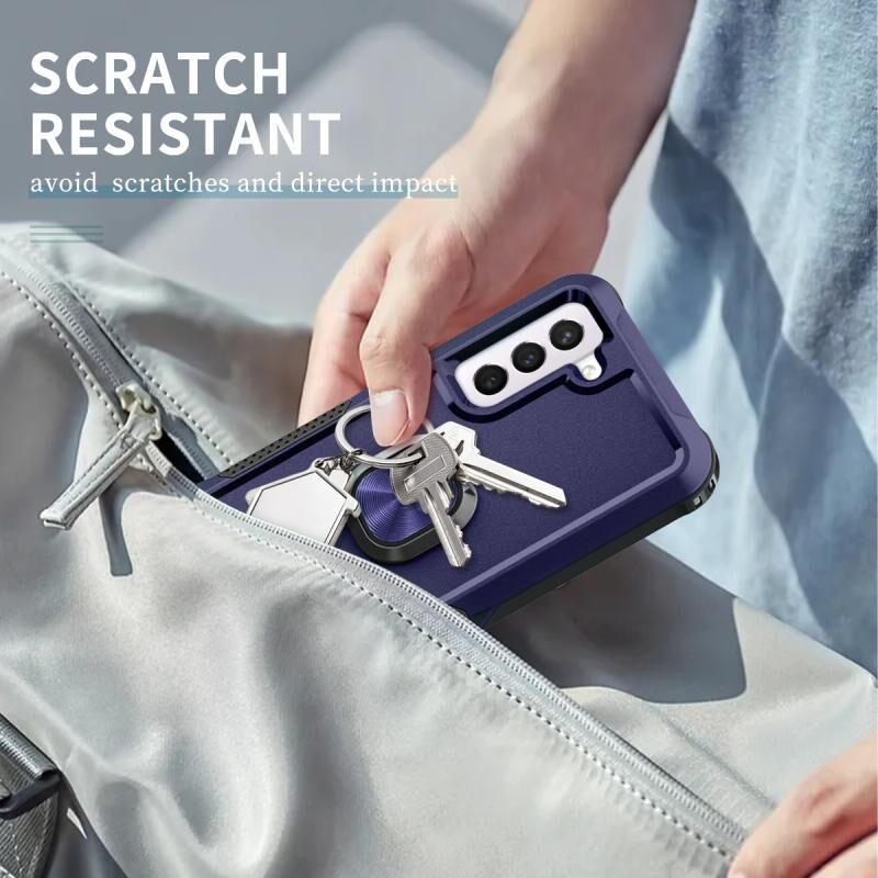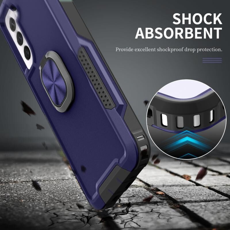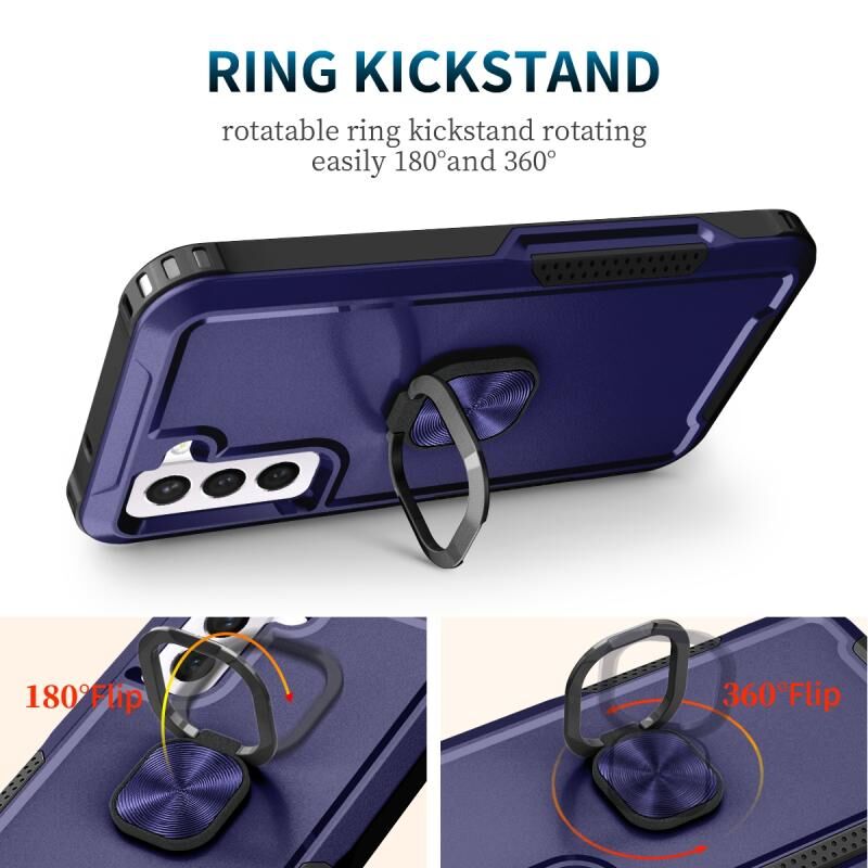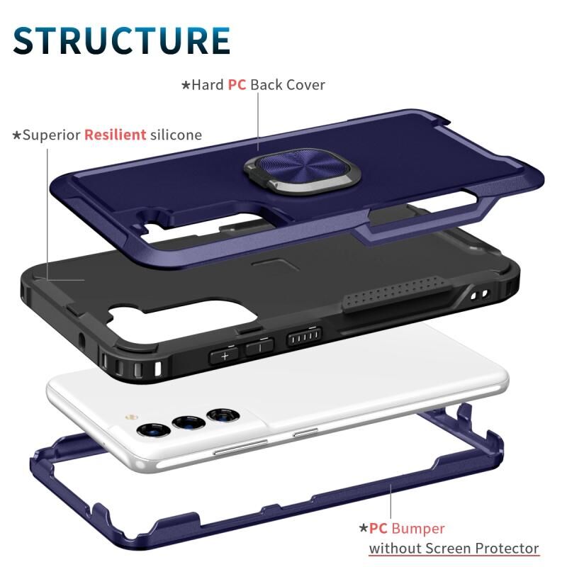 Για Samsung Galaxy S21 FE 5G 3 σε 1 Δαχτυλίδι κάτοχος PC + TPU υπόθεση τηλεφώνου (Ναυτικό μπλε)