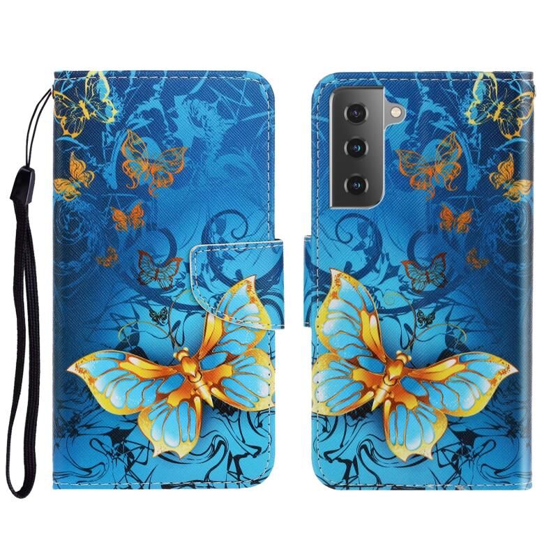 Θήκη τηλεφώνου δερμάτινη οριζόντιας αναδίπλωσης με έγχρωμη τρισδιάστατη σχεδίαση για Samsung Galaxy S21 FE 5G (Πράσινη Πεταλούδα)