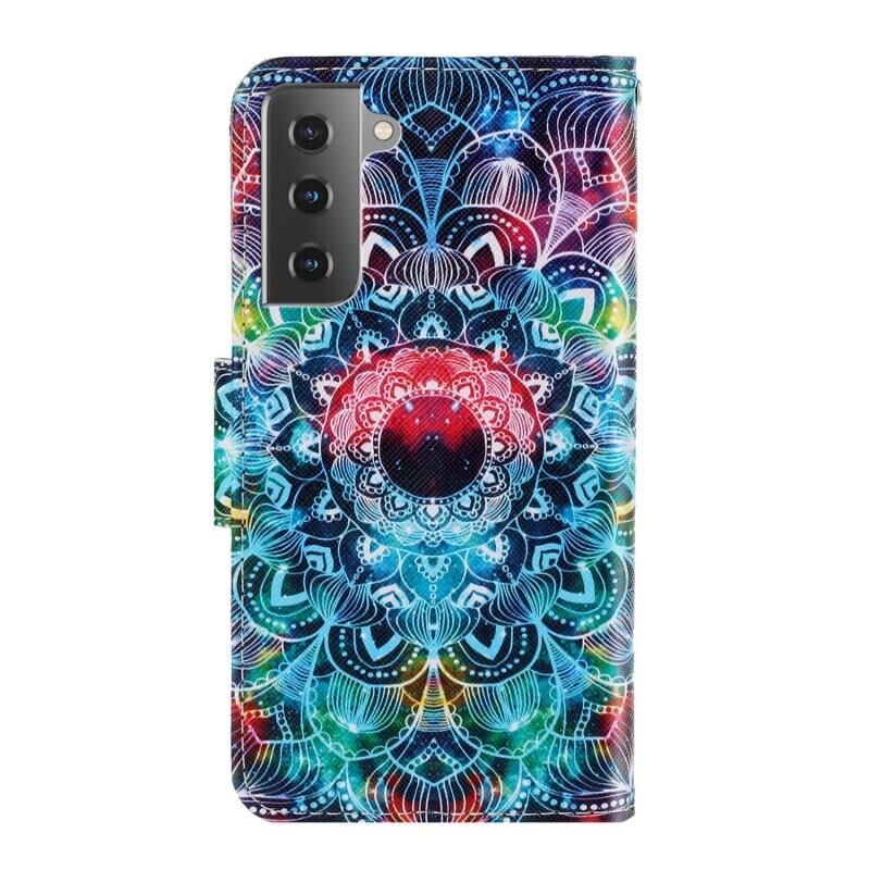 Θήκη τηλεφώνου Samsung Galaxy S21 FE 5G 3D πολύχρωμης σχεδίασης οριζόντιας αναδίπλωσης από δέρμα (Κόκκινο)