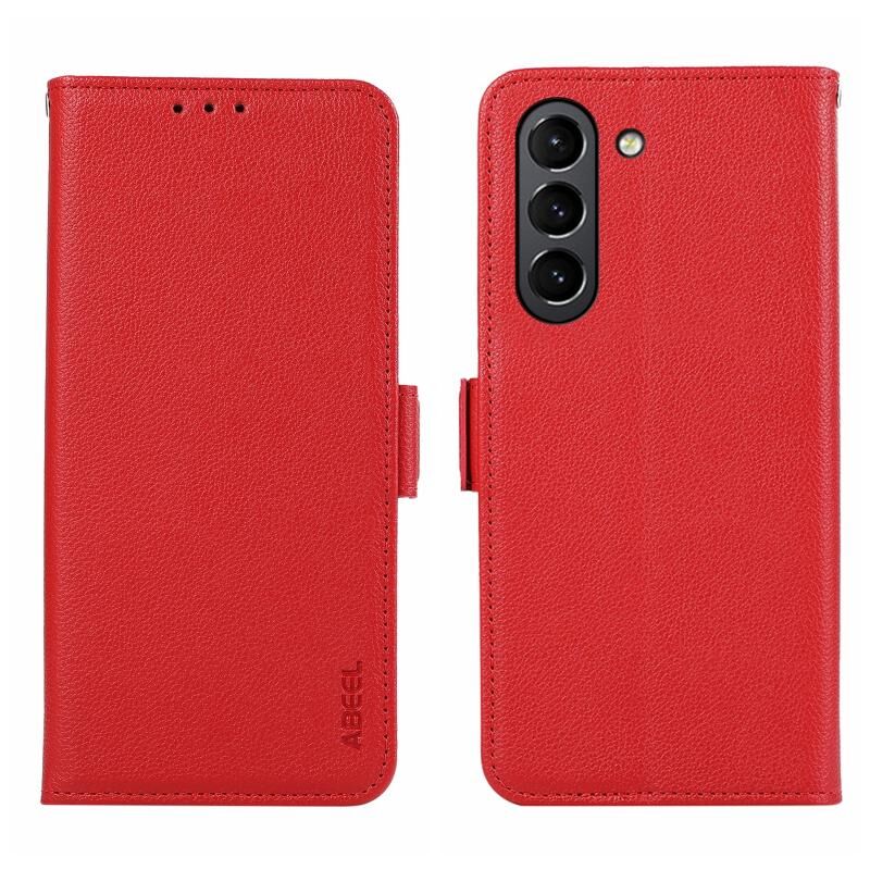 Θήκη τηλεφώνου Samsung Galaxy S21 FE 5G ABEEL με μαγνητικό κλείσιμο, δερμάτινη με υφή λitchi και προστασία RFID (Κόκκινο)