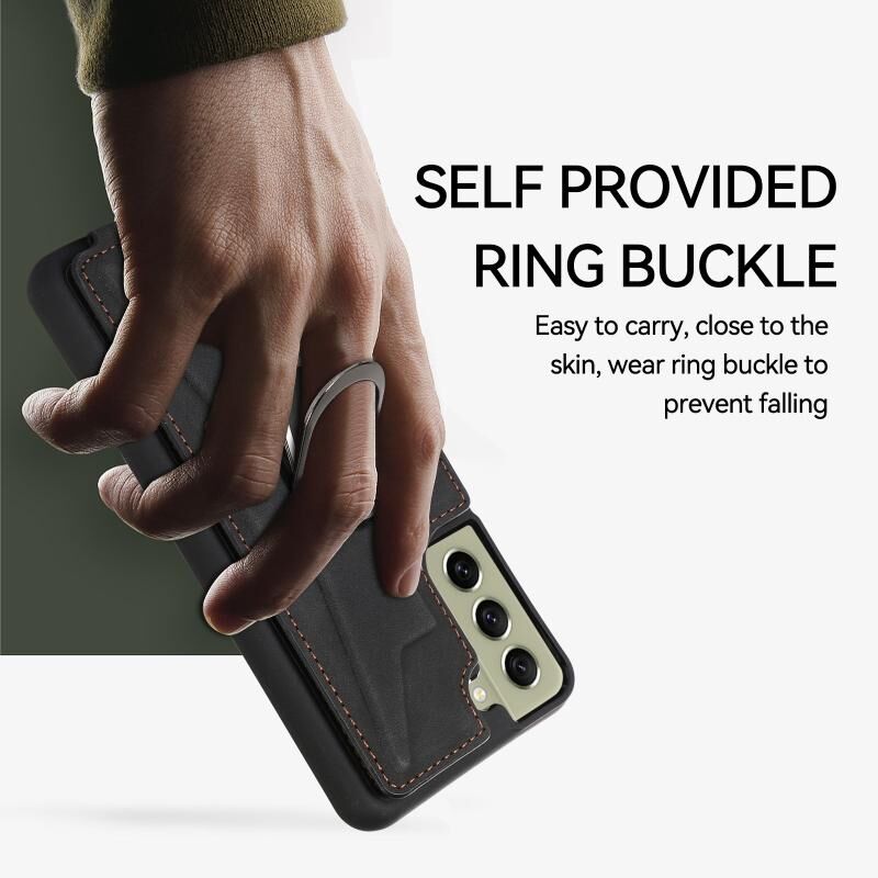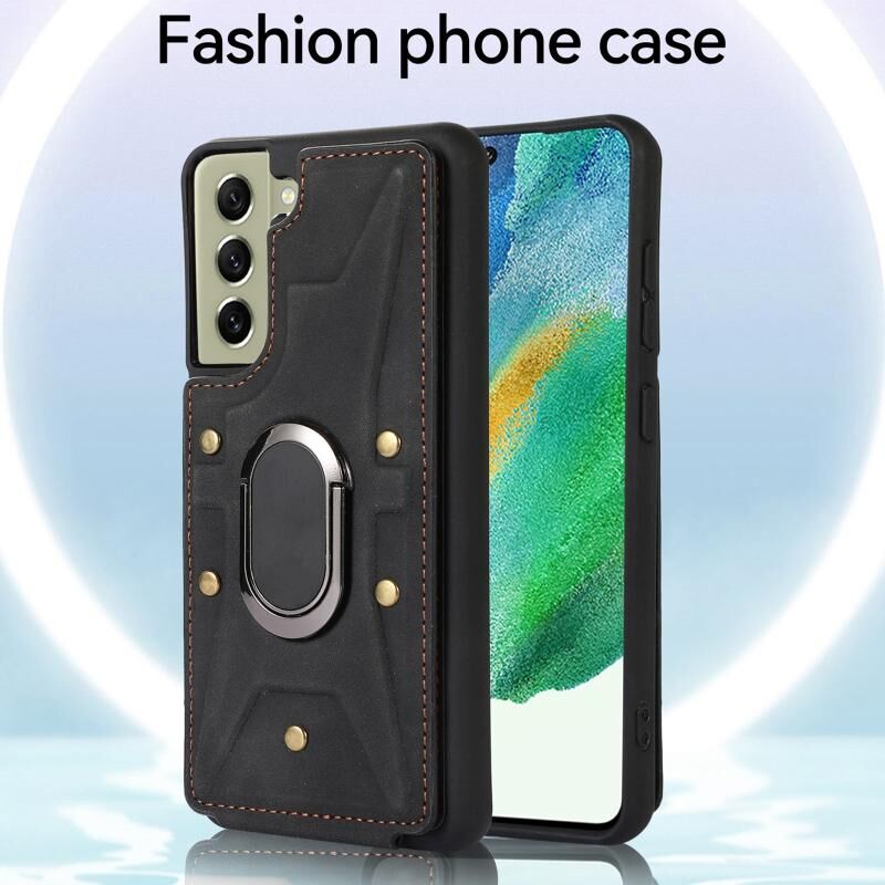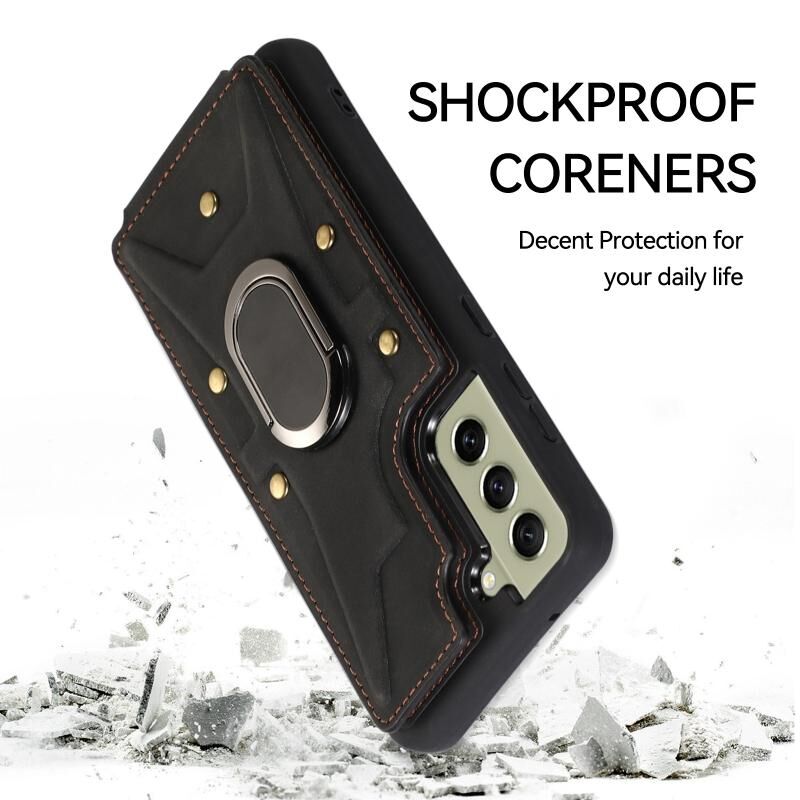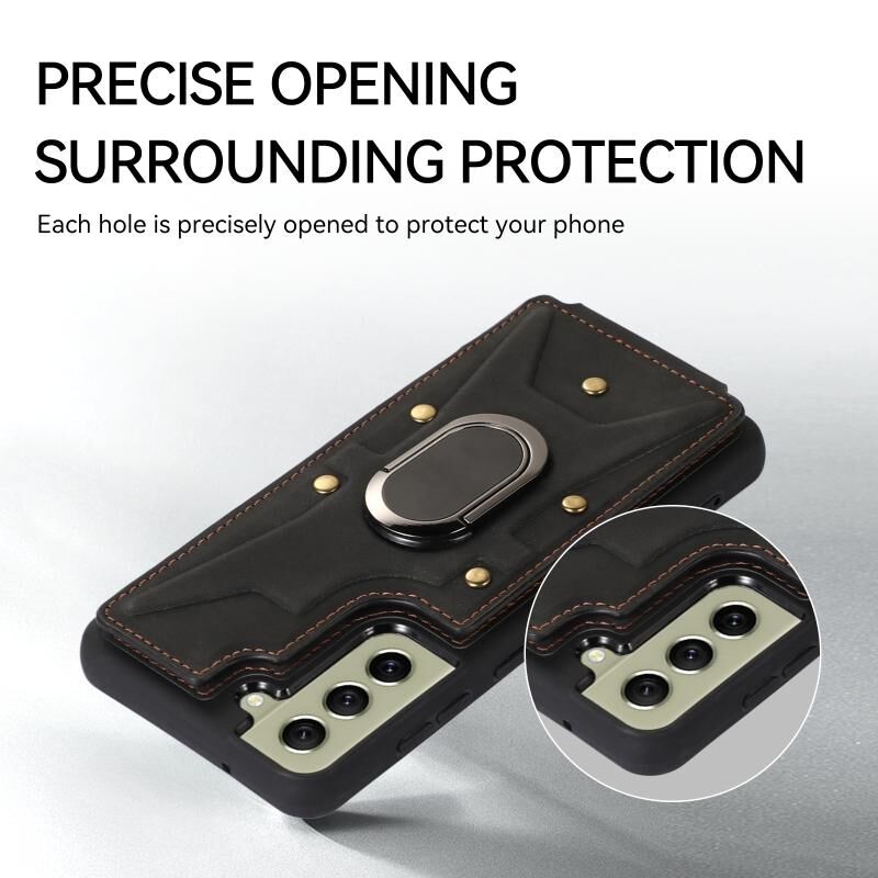 Για Samsung Galaxy S21 FE 5G θωράκιση δαχτυλίδι πορτοφόλι πίσω κάλυμμα τηλεφώνου υπόθεση (μαύρο)