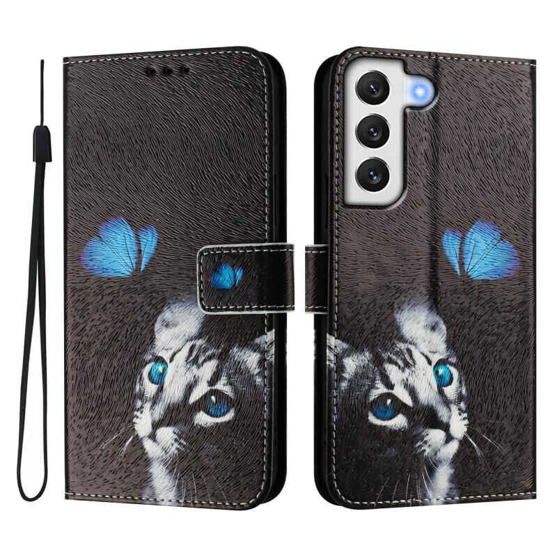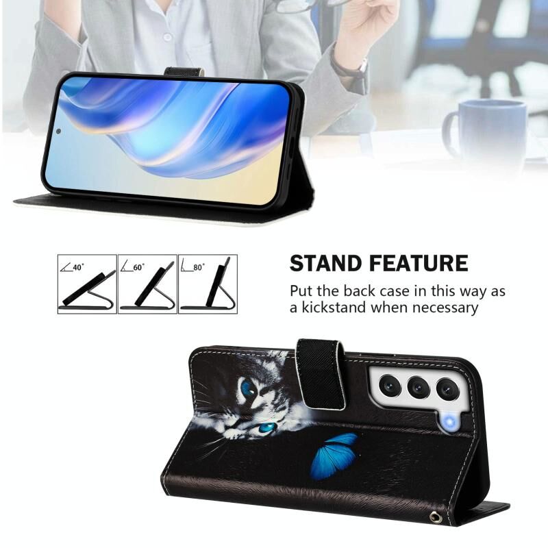 Θήκη τηλεφώνου Samsung Galaxy S21 FE 5G από δέρμα με σχέδιο ζωγραφικής και πολύχρωμο μοτίβο (πεταλούδα γάτα)